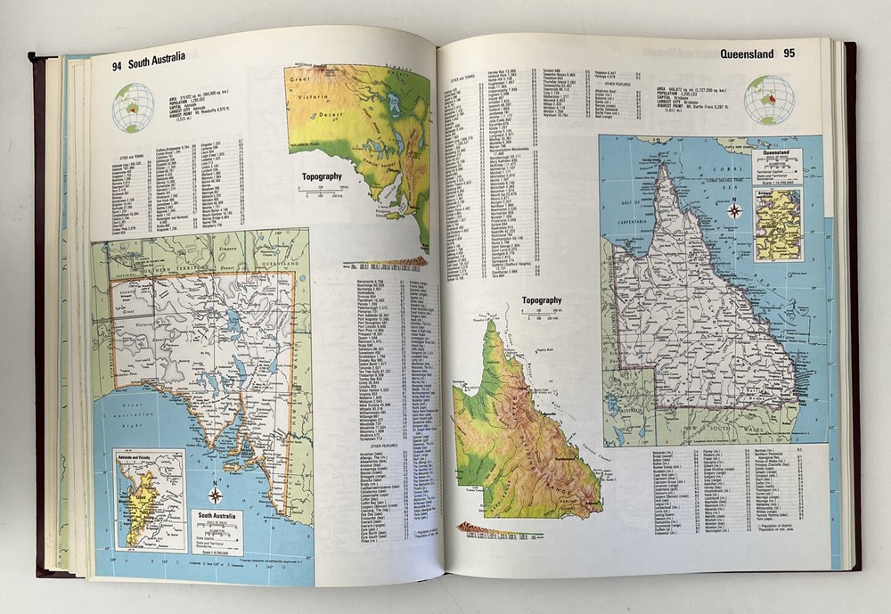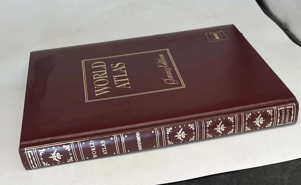 Hammond World Atlas Classics Edition Faux Leatherbound LIKE NEW!. There is a small amount of yellowing around the outer edges of the pages. Binding is tight. No writing, underlining or highlighting on any of the pages. No rips or tears. Know what you’re buying. There are 2 small rips on the cover at the corners. Please view all the pictures carefully. They are part of the description and the actual book you will receive. Shipped USPS Media Mail. BK 9-E