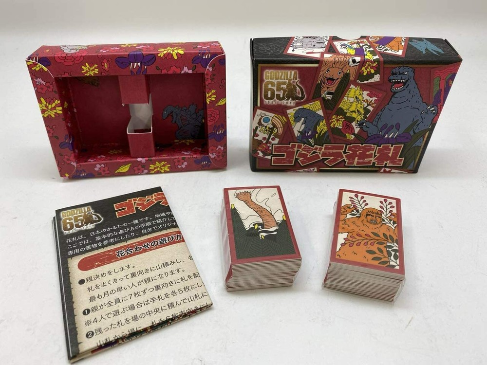 Product introduction Introducing "Hanafuda" to commemorate Godzilla's 65th anniversary! All the illustrations are newly drawn! There are many from successive Godzilla to maniac monsters. Contents: Tag / 48 sheets, with how to play (instruction manual,Japanese) Card size: Approximately 54 x 32 mm Welcom to OtoUta Shop! ! Thank you for looking at my items. Payment Accept credit or debit card and bank payments safely and easily with PayPal. We accept ebay Management only. Please pay within 5 days after auction is finished. Shipping FREE SHIPPING Shipping Method : Japan Post Delivery Period : Around 2~4 weeks. (Delivery may be delayed due to the world situation. ) Standard Shipping : 7-14 days FREE SHIPPING !! Expedited Shipping : EMS (insurance: about US$25 & detailed tracking number) 2-6 days Please Note: Import duties, taxes, and charges are not included in the item price or shipping cost. These charges are the buyer's responsibility. Please check with your country's customs office to determine what these additional costs will be prior to bidding or buying. feedbacks Customer satisfaction is very important to us. If you have any problem with your order,please contact us and we will do our best to make you satisfied, please do not leave a negative feedback before we resolve your problem. We guarantee that your issue will be solved quickly. As long as you are happy with your purchase of , please leave us a positive feedback. Your feedback is very important to us it affects our search placement on eBay. We will leave a positive feedback for you in return automatically once we receive your feedback.