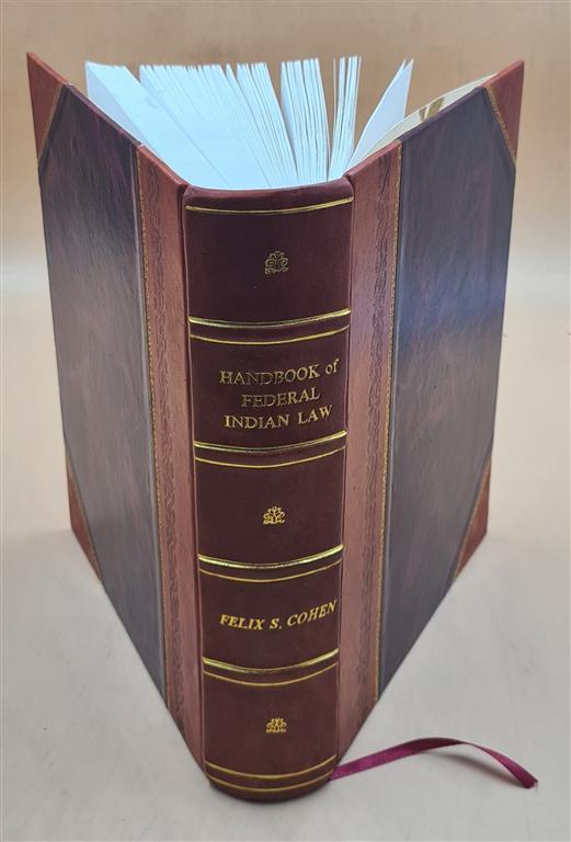 About the Book: Complete Title: Handbook of Federal Indian law, with reference tables and index. Foreword by Harold L. Ickes. Introd. by Nathan R. Margold. Washington, U.S. Govt. Print. Off., 1942 1972 [Leather Bound] Author: Cohen, Felix S. Edition: Reprinted by Gyan Books in 2022 with the help of original edition published long back [1972] . Language: English No. Of Pages: 700 Binding: HALF LEATHER binding features a leather spine and corners with the remaining cover in Raxine or Marble Paper. CHOOSE ANY LEATHER COLOR OF YOUR CHOICE WITHOUT ANY EXTRA CHARGES JUST CLICK ON IMAGES FOR OPTIONAL COLORS AND INFORM US YOUR CHOICE THROUGH MAIL WITH COLOR CODE. Customization Options Available Upon Request We provide 'Extra customization*' on request with additional charges. Please note that customization charges are applied in addition to the listed item (Book) price. Customization Extra Charges Sample Image FULL LEATHER BOUND WITH GILDED EDGES (ANY COLOR) USD 35 MULTI-COLOR LABELS (Spine) USD 12 PERSONALIZED IMAGE EMBOSSING ON THE FRONT COVER USD 40 FOLIO EDITION (12x18.5 inches) BIGGER SIZE Six times of the given price Points to note before booking order: SPECIAL DISCOUNT FOR BULK ORDERS PLEASE CONTACT US. UNIQUE LEATHER-BOUND Edition on Spine and Corners along with Golden Leaf Printing on Round Spine. This book is: Printed in Black & White (If a color edition is available you may request it by mail for a nominal charge.) Sewed binding for longer life Printed on high quality Natural Shade Acid Free Paper Professionally processed without changing its content Genuine Leather is being used for Binding Handcrafted Golden Leaf Printing. Round Spine Handmade Marble paper use for end paper Raise bands Bookmark Ribbon As these are old books each page is processed manually to make them readable. But in case some pages are blur or missing or have black spots the same are re-printed as it is to keep the authenticity of the book. In case of multi volume sets please note that the above listing is for a single volume only. (To order multiple volumes please contact us separately). We request you to understand that these leather-bound books are work of art and hence require time to go through different process to be the masterpieces that they are. We usually take 20 business days as handling time to dispatch shipment. We consider special request for a special occasion. Craftsman based in India prepared this book and shipped from different stock locations around the Globe. PRODUCT DISCLAIMER: Please be aware that because leather is a natural material slight discoloration or change in texture may be visible. ABOUT US GYAN BOOKS INTRODUCING A REMARKABLE LEATHER-BOUND EDITION, METICULOUSLY CRAFTED BY THE ESTEEMED INSTITUTION: RARE BIBLIO A UNIQUE LEATHER-BOUND BOOK FOR ELITE READERS/COLLECTORS OF OLD RARE AND BESTSELLING BOOKS. An ORIGINAL LEATHER is being used for Binding this Book on SPINE AND CORNERS along with GOLDEN LEAF PRINTING {Half Leather}. We deal into reprinting of the masterpieces crafted by authors around the world. We are proud to say that we have a collection of over 25 million books and our collection includes books that are as old as 200 years and hence are considered as RARE BOOKS. We are pioneer in this field having experience of 40 years. We also undertake printing and Leather Binding jobs of other books. Thesis printing and Leather Binding is one of our important services. Many publishers and authors approach us for their books to bind in our unique leather binding format for their special customers. Our craftsmen are active in this job since generations. Restoration of old books is our expertise. We are known by our Customization options. We have many leather color options in our bucket. The whole process is done manually so that it gives you the same feeling of old book.