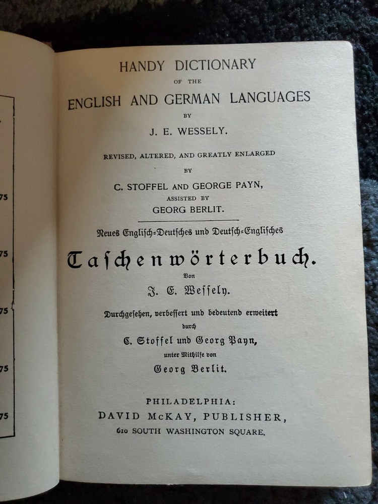 Handy Dictionary of the English and German Languages by J.E. Wessely early 1900. Pages are in pretty good shape considering the age of the book..please look at the pbotos any questions feel free to ask
