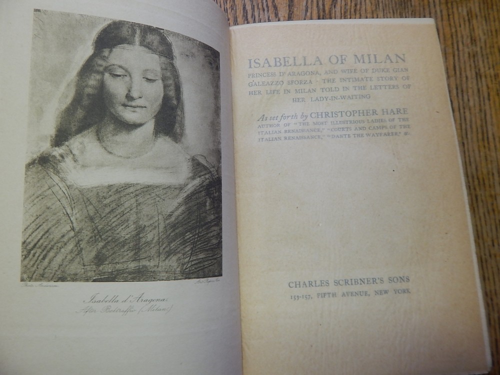 Isabella of Milan Princess D'Aragona, and Wife of Duke Gian Galeazzo Sforza, The Intimate Story of Her Life in Milan Told in the Letters of Her Lady-Waiting, as Set Forth by Christopher Hare. Charles Scribner's Sons, New York, QUARTER LEATHER, ILLUSTRATED , nd, circa 1911. 307 pages, 8 3/4 inches tall. Fictionalized account of Isabella which claims to stay very close to historical realities. 18 illustrations, mostly of persons. Very handsome, rather fine binding, Hunter Green quarter leather as shown. Very Good Plus+ with some wear to corners, edges, Froo www.froo.com | Froo Cross Sell, Free Cross Sell, Cross promote, eBay Marketing, eBay listing Apps, eBay Apps, eBay Application
