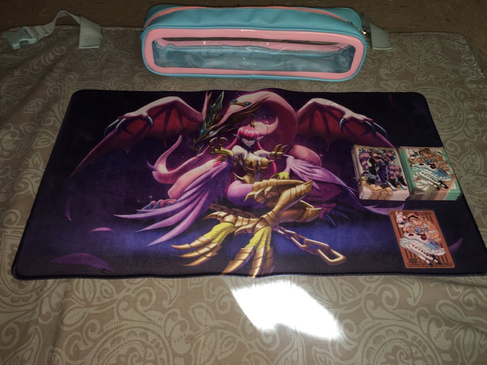 All items are in great shape and the bag as well as the playmat are hardly used. List of items: 1 Stitched edge Rubber Playmat Harpie Theme 2 Limited Edition Sweet Wonderland themed sleeves 70 count each Yu-Gi-Oh sized 1 Amanda La Palme Zip Up Carrying Bag 1 Limited Edition Sweet Wonderland Field Center Tracking Will be included