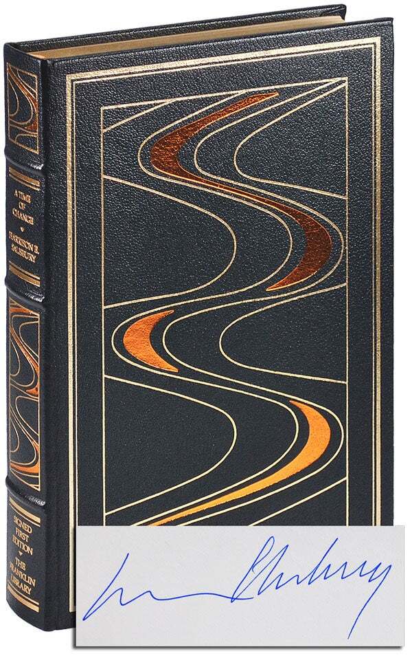 A TIME OF CHANGE - LIMITED EDITION, SIGNED Author: Salisbury, Harrison E. Title: A TIME OF CHANGE - LIMITED EDITION, SIGNED Publication: Franklin Center: The Franklin Library, 1988 Edition: First Edition Description: Limited Issue, signed by the author on a preliminary leaf. Octavo (24.5cm); full navy blue leather, with titling and decorations stamped in gilt and metallic orange; marbled endpapers; all edges gilt; 354pp. A Fine copy. Seller ID: 4124 Subject: Biography & Autobiography, Website Only Captain Ahab's Rare Books pursues fine books in all fields, with a special emphasis in 19th and 20th century literature, manuscripts, association copies, mystery & science fiction. We are proud members of the Virginia Antiquarian Booksellers Association. Terms All items are guaranteed to be as described or they may be returned within 30 days of receipt for a full refund. This listing was created by Bibliopolis.
