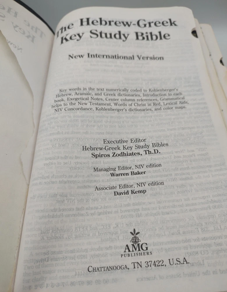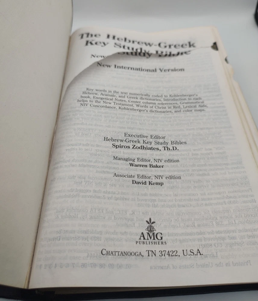 Hebrew Greek Key Study Bible NIV 1996 Black Genuine Leather AMG Publishers This Hebrew-Greek Study Bible is in Acceptable condition. Please see the condition description for details. If you purchase more than one item, the shipping will be combined into as few packages as possible to reduce the shipping costs per item. Please contact me with any questions. If the price isn't quite right, please make an offer.