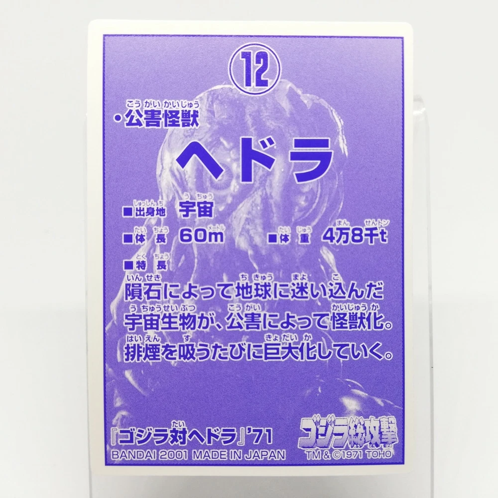 Hedora Godzilla Mini Card 0.164x0.23ft Bandai No.12 Collectible