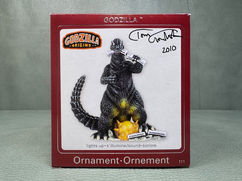 We have 100's of Christmas Ornaments so please view our other selections. Brand New.............Carlton Cards Heirloom Collection Godzilla Christmas Ornament with Light and Sound......Model #111.....fresh batteries may be needed Free shipping