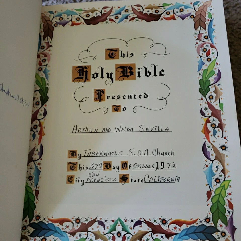 Good condition- has handwriting on first couple pages - SEE PICTURES- Otherwise in great shape, no underlining or writing on the inside of Bible. Padded hardcover