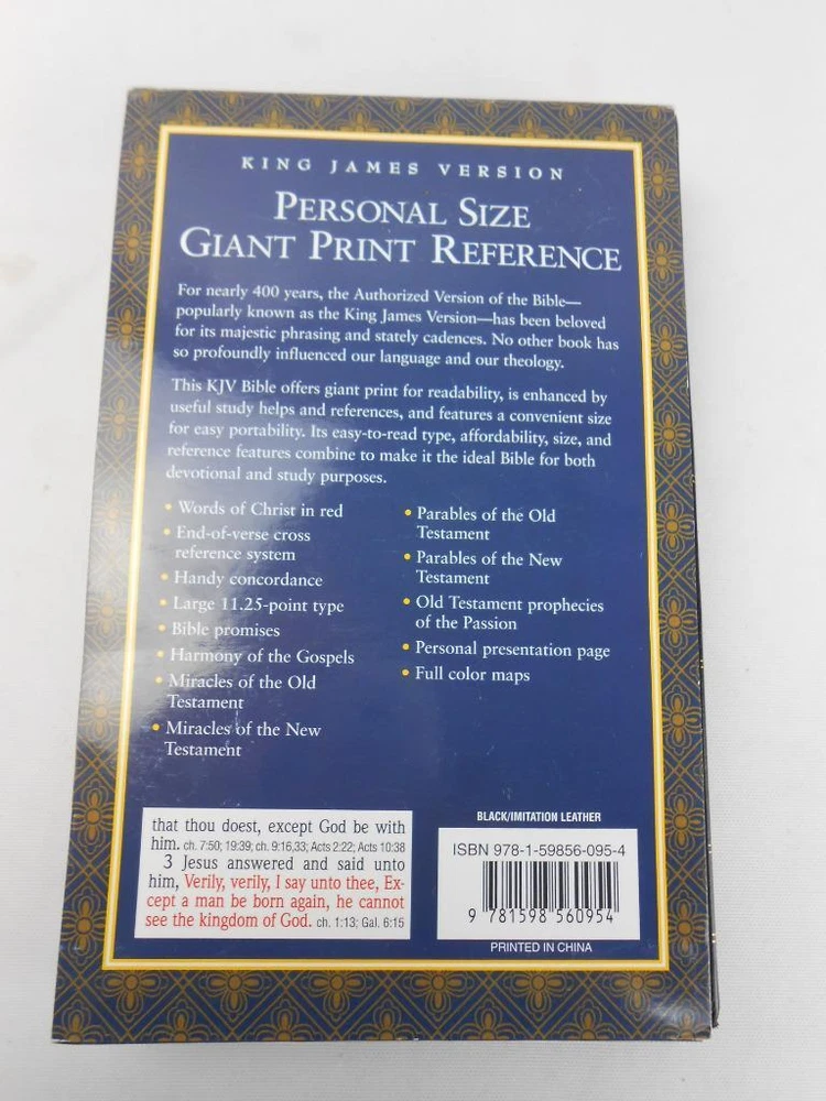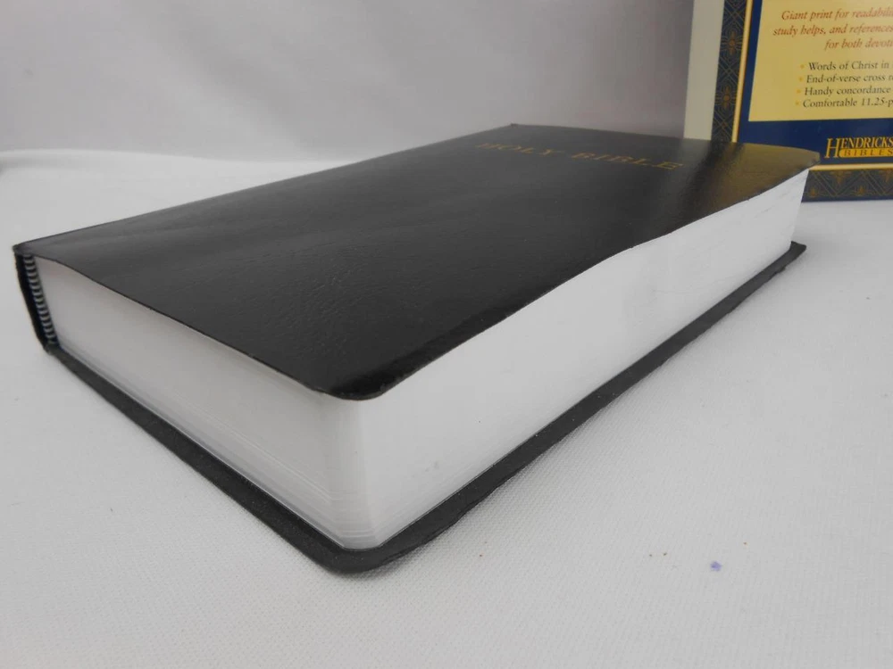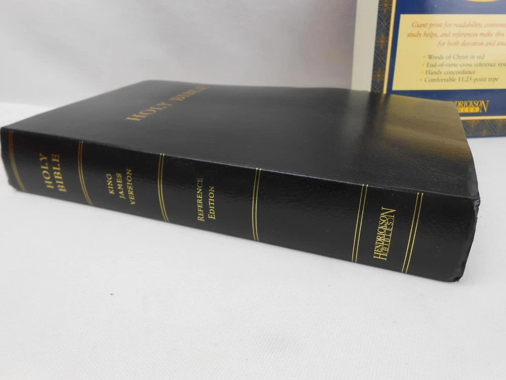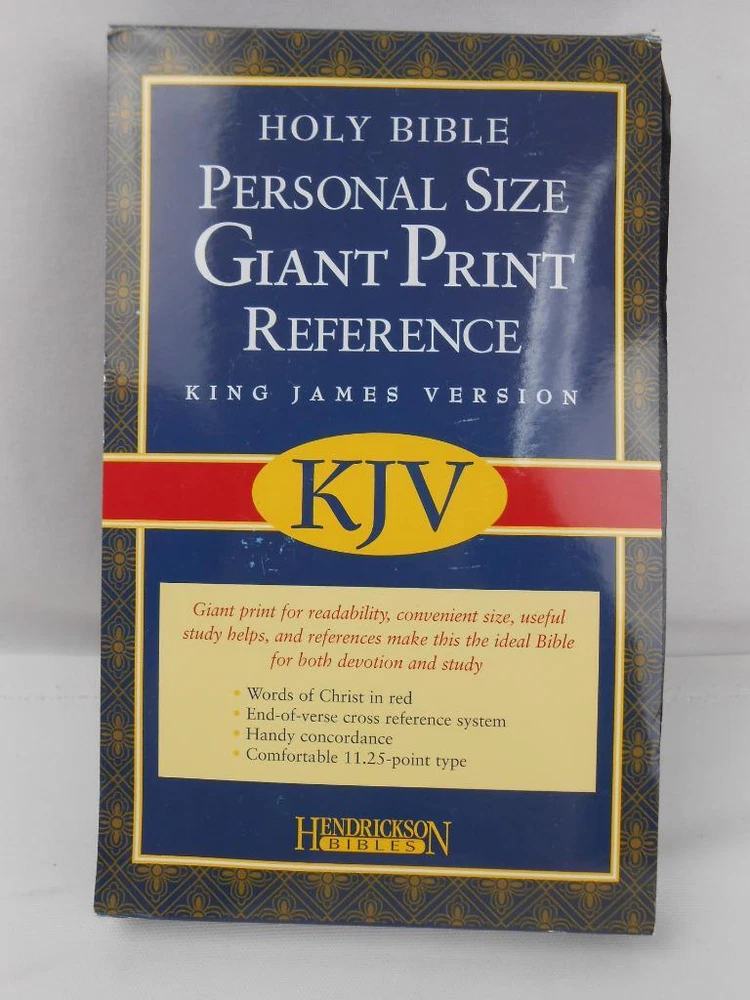Hendrickson KJV Holy Bible- Personal Size- Giant Printer - Reference/Concordance Hendrickson KJV Holy Bible- Personal Size- Giant Printer - Reference/Concordance Click images to enlarge Description This listing is for a NEW- unused Hendrickson Holy Bible King James Version (KJV) Personal Size Giant Print Reference & Concordance Black faux leather cover Please view the pictures carefully as they are part of the description. If you need additional pictures or information please contact me. NOTE: I do offer shipping discounts for multiple items purchased, so make sure and browse through my store for other great finds. Payment Paypal Only!! Shipping I try to use the fastest,most economical forms of shipping. If you would like another method that is not listed as an option, please contact me for shipping costs. Please note that for package less than 2 lbs it is as inexpensive to ship Priority Mail as it is Parcel Post (plus you get it much faster!) International Customers: Please note that the least expensive means of shipping is 1st Class. However, it is not always possible to track. Please understand that most delays are due to customs. The seller is not responsible for additional fees such as tarriffs or customs . About Us I will always try to describe items accurately...ship economically....pack items carefully and respond quickly. Please feel free to contact me any time with questions or concerns. Before leaving 1 or 2 star ratings, please contact me as I want you to have a 5 star experience! I do appreciate your business! Contact Us Please feel free to contact me through Ebay. Please let me know of ANYTHING you are unhappy about as I will do my best to make things right! Pictures sell! Auctiva offers Free Image Hosting and Editing. 300+ Listing Templates! Auctiva gets you noticed! The complete eBay Selling Solution.