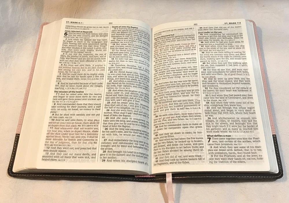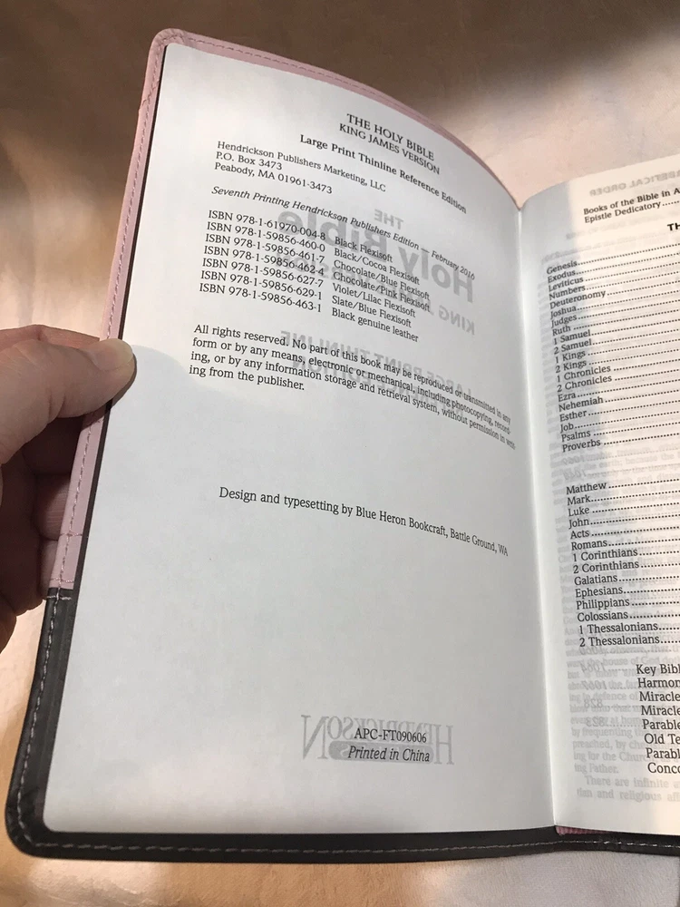 The Bible was exactly as described, virtually new and unused. It came packaged very well in multiple layers of packing material, and in a sturdy box. Couldn't be happier.
