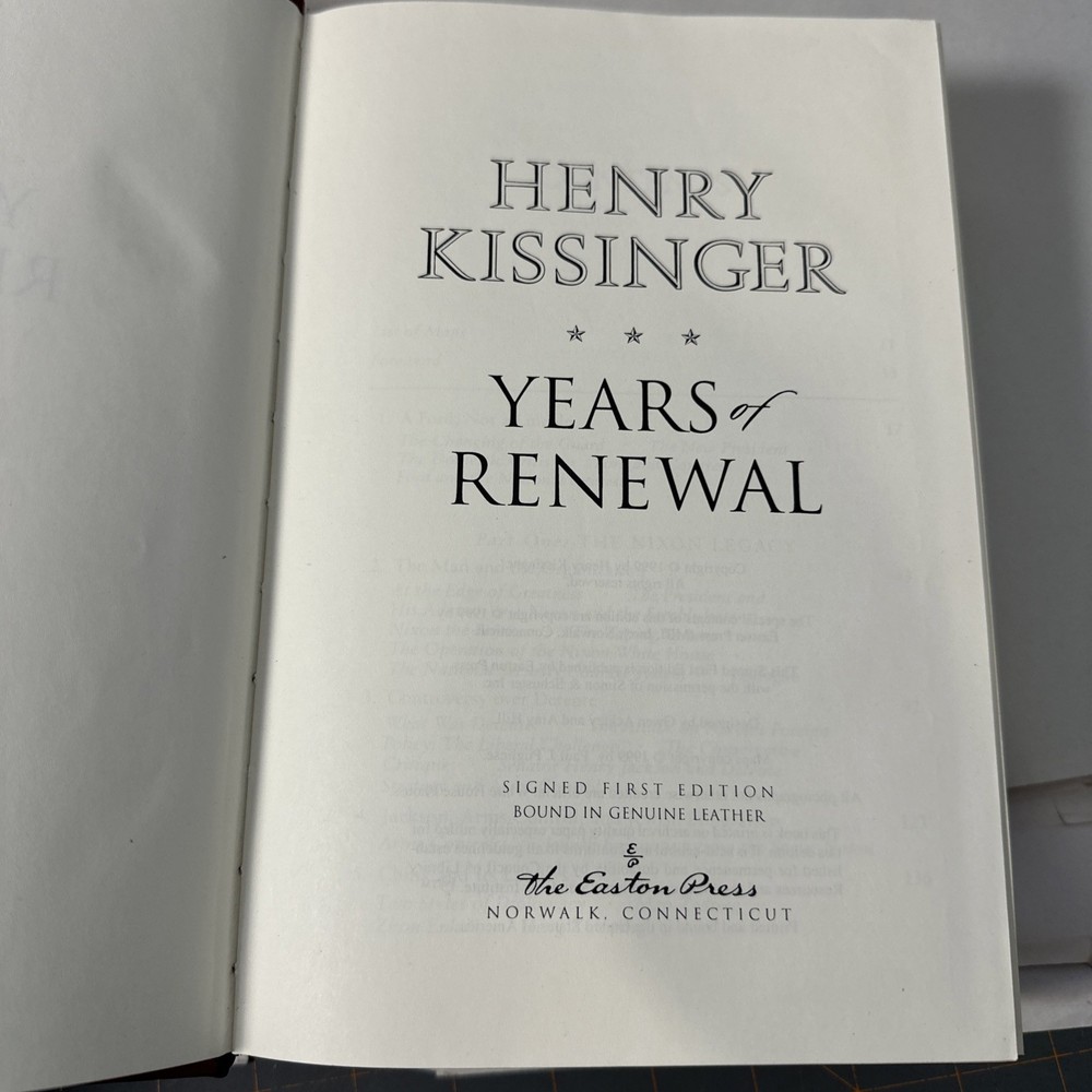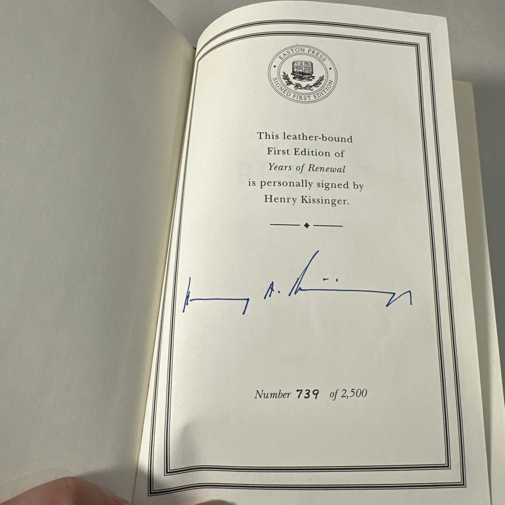 SIGNED Easton Press Edition #739 of 2,500 Title: YEARS OF RENEWAL By: Henry Kissinger SIGNED EDITION Easton Press...