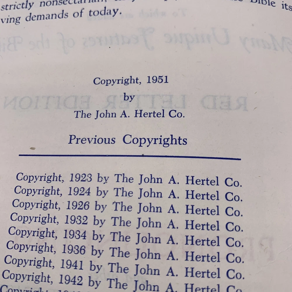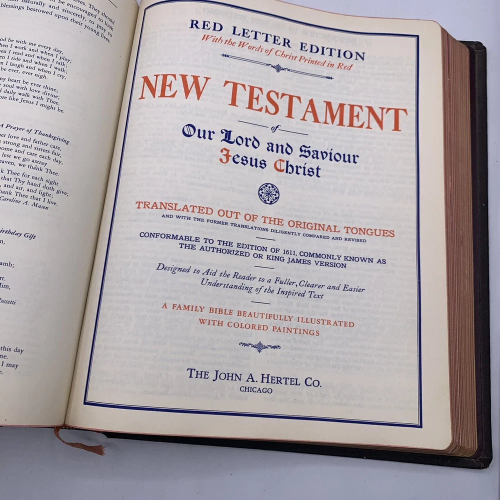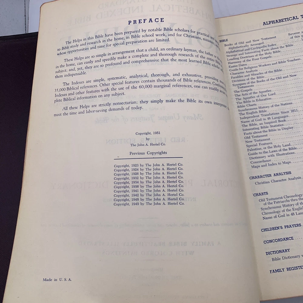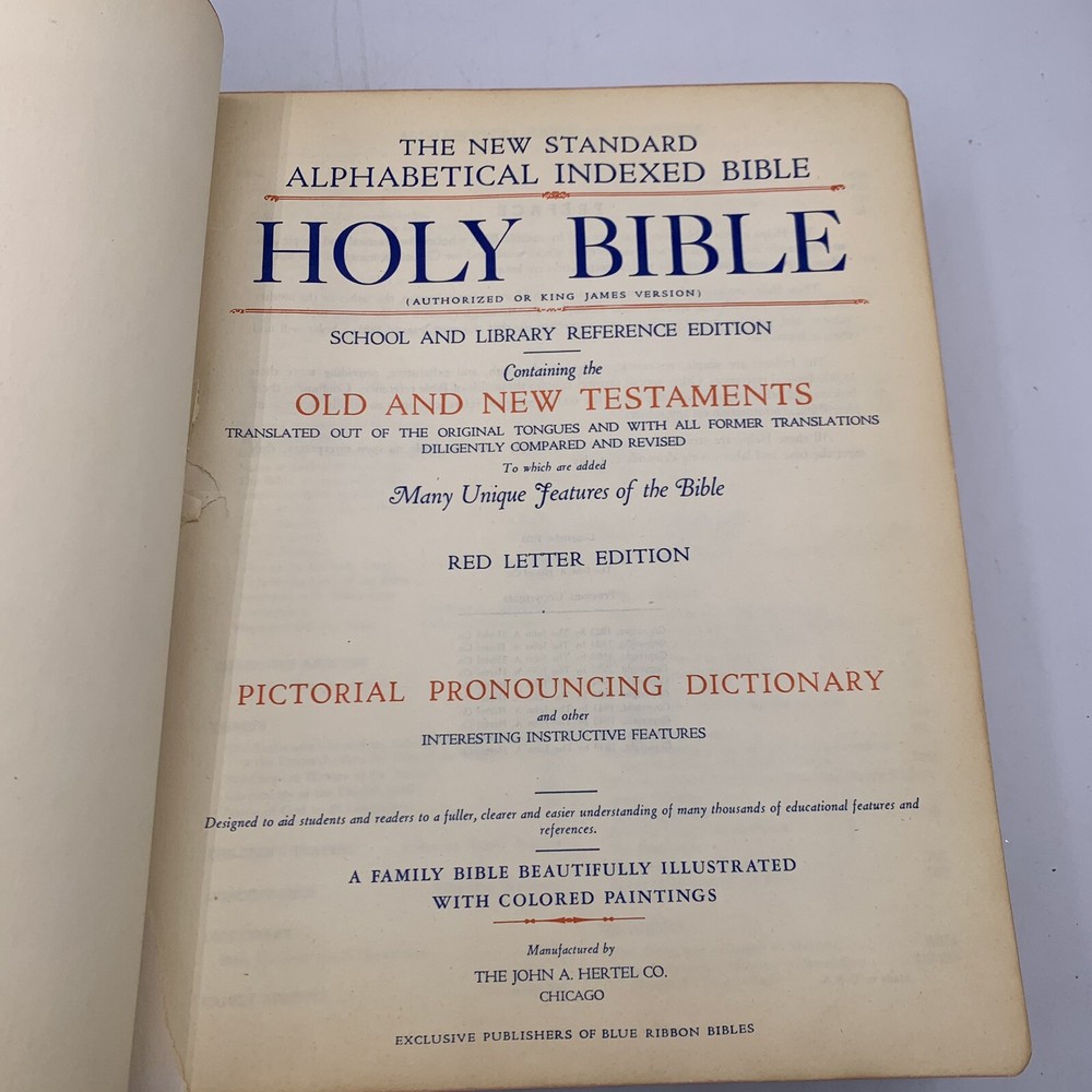 Large reference bible in good used condition. A tear on title page. Writing on genealogy page. See pics....