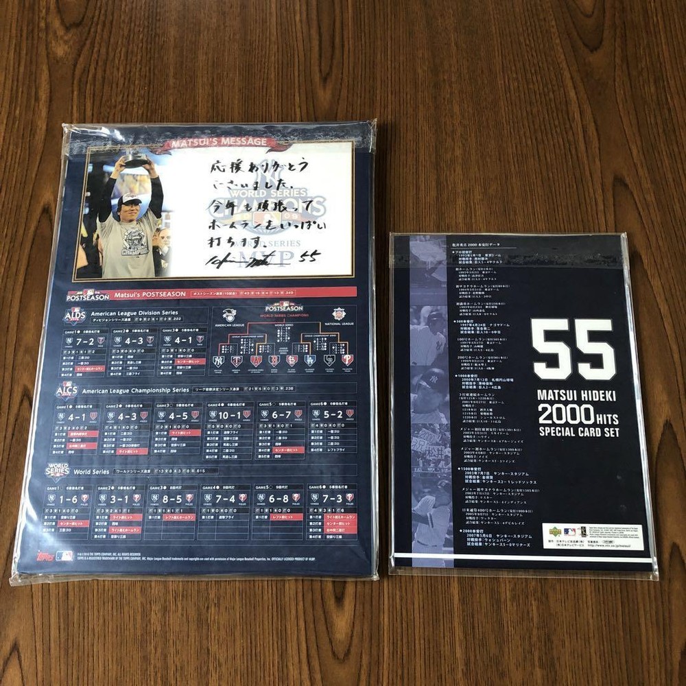 template Hideki Matsui Special Card Set 2 Sets New Description ☆ Hideki Matsui Home Run Card 2009 Size: about 36.3×25.7cm Contains 17 cards Matsui''s message ☆ Hideki Matsui 2000 Hit Special Card Size: about 25.7×18cm Contains 6 cards It''s new and unused, but I opened it to take a picture. Thank you very much. Shipping Please feel free to ask me if you have any questions. Shipping : DHL, Fedex, Japan Post It usually takes about 10 days from the date of order. Payment If I do not receive the payment within 3days, I will cancel your order. Others Due to international shipping, there may be a delay in the arrival of your item. There is a possibility that the outer box may be dented during delivery or the box may be opened during customs clearance and the outer box may be damaged. We accept returns only if the item is defective at first. Import taxes are paid by the buyer. The act of declaring a lower price: Under value is not allowed. About Us Please tell me the product you want. We will do our best to find it. We will keep the shipping date. Sincerely yours Picture