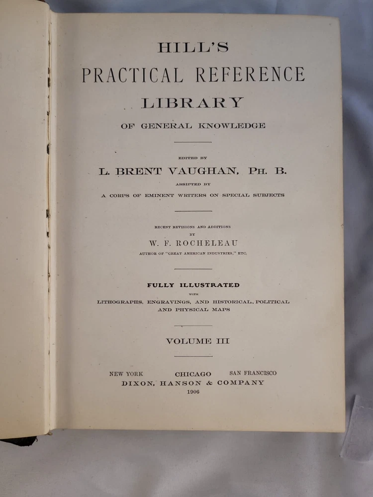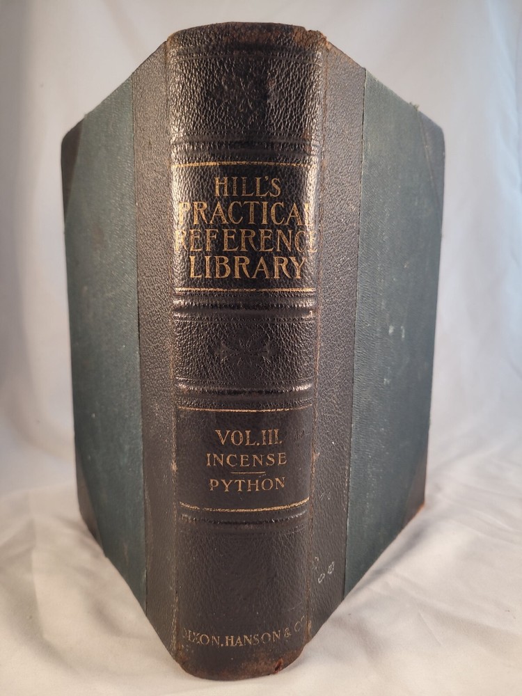 Hill's Practical Reference Library: Insence Python Volume III (1906, Leather). EE Good condition Spine and binding in good condition, some weakness in spine, pages tight. Some shelf wear on binding and cover. No writing or highlighting on the inside pages. Pages in good reading condition, some natural yellowing consistent with a book of this age. Good copy for reading or collecting. In stock and ready to ship promptly. The book pictured will be the book you will receive Book comes from smoke free environment. ***Please see pictures for a more thorough and detailed description of item specifics, wear or damage. The zoom tool is an excellent way to truly see what you are purchasing.*** Disclaimer: I skimmed through this book and did not see any underlining, highlighting, or writing other than the markings indicated. However, I did not go page by page. Delivery We ship USPS standard media mail with free delivery confirmation to ensure timely, accurate delivery direct to you. Shipping in the U.S. only. Buyer to pay Shipping fee. Whenever possible, I will combine items to reduce total shipping cost. Please contact us before paying your order to combine shipping. Contact Us! If you have any questions, or want additional pictures of an item, please send us a message, we normally respond within the day. Check out our other Listings! We consider ALL offers!!!