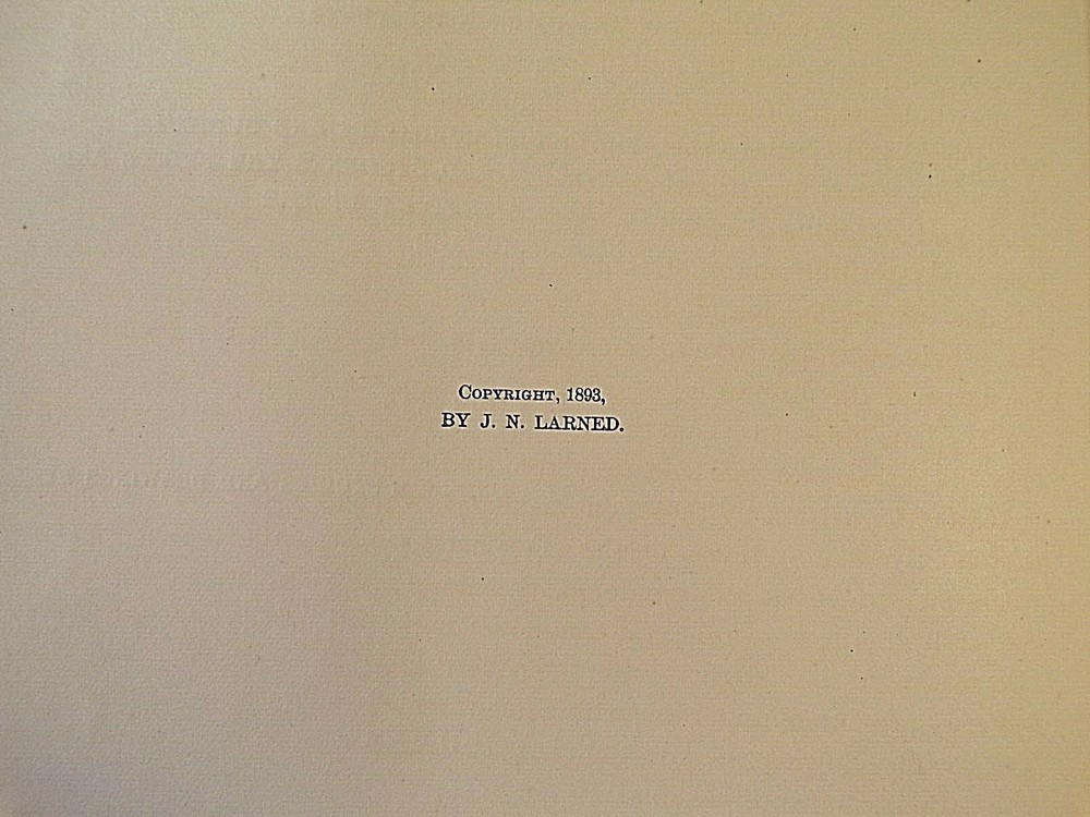 History for Ready Reference and Topical Reading Complete in Five Volumes by J.N Larned Published by C.A. Nichols Co (1895) - Hardcover, no Dustjacket, as issued 1st Edition, 1st Printing Volume I was published in 1893, Volumes II-IV were published in 1894, and the final volume was published in 1895. Half leather with pebbled cloth, with gold trim and gold titles one spine. Gold top, fore, and bottom page edges. Comes with questions pamphlet All five volumes are in very good condition, with wear and scuffing to the covers, especially to the corners, edges, and spine.