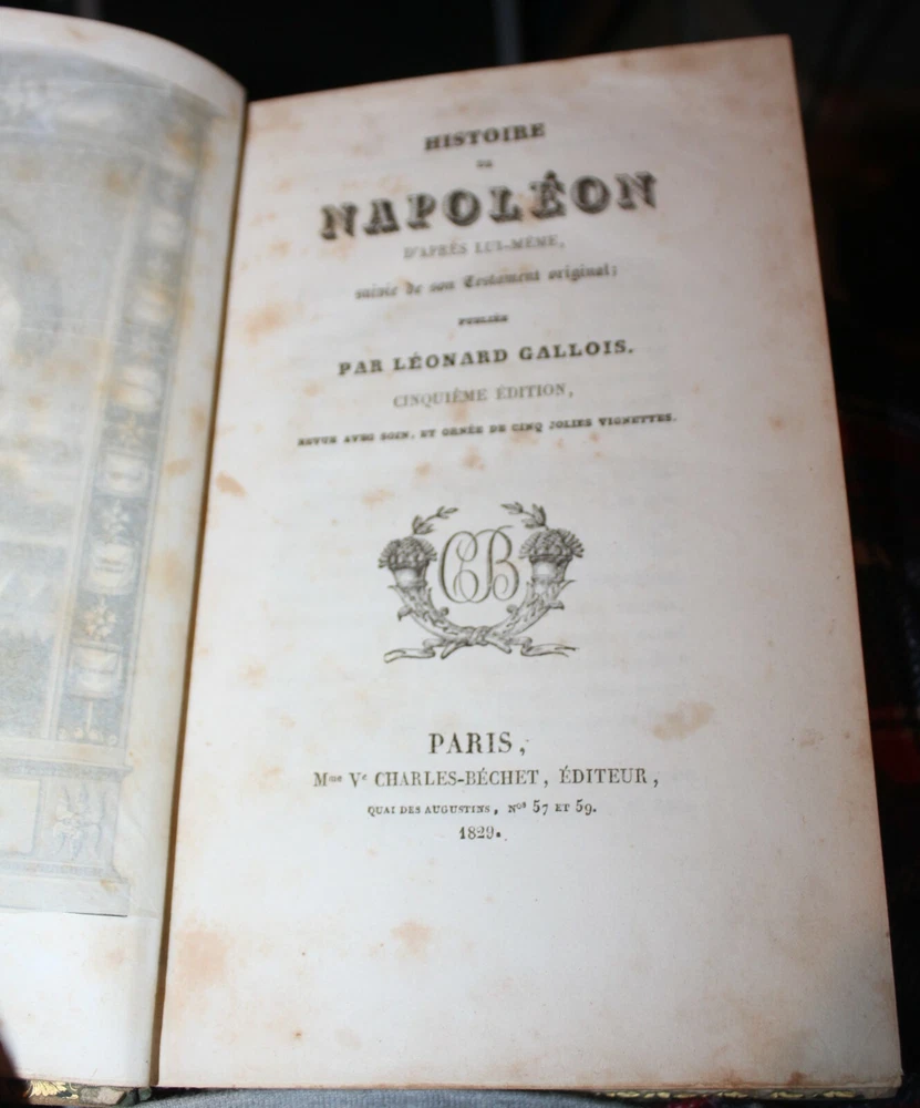 History of Napoleon According to Himself, Followed by His Original Testament Published by Leionar Gallois Fifth Edition. Some foxing and scuff on the outside back corner but a difficult copy to find. Great engravings throughout. A nice addition to a collection. 630 pages, fifth edition About Me/Shipping I am a wholesaler dealer and scour GA and New England for the best to buy for my customers. I am also the founder of WorthPoint.com and would encourage all to visit it if you want to research antique prices. I focus on happy repeat customers and love what I do and try to ensure all customers are happy. Consider your source when buying. I have sold over 15,000 items on eBay and have 100% positive feedback. I charge GA sales tax to GA residents. I specialize in paper, photos , coins and militaria. I sell about anything except reproductions. If it is not old, I say so. If there is a defect, I also say so. If you know more than me about something, that is OK, as I do not mind learning or being told that I am wrong and strive for accuracy. You can always learn more in this business. If buying internationally, email me for final postage if you are the winner. eBay's quoted postage tends to be too high for a 1st class envelope