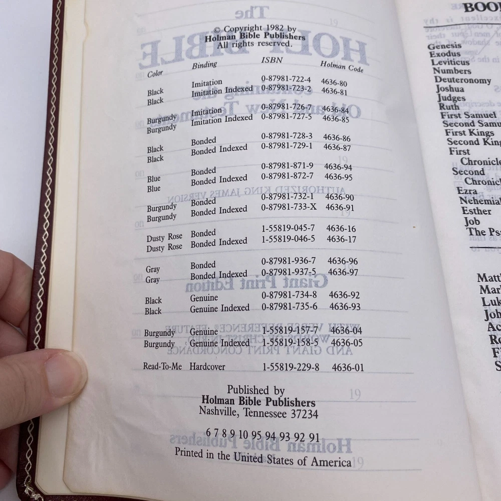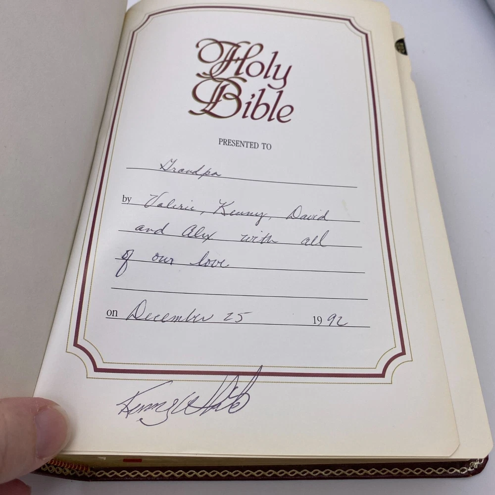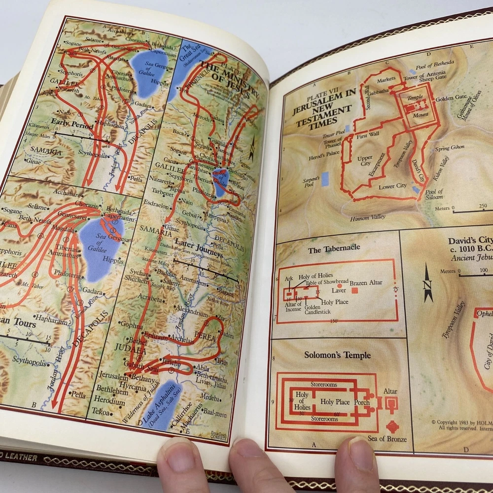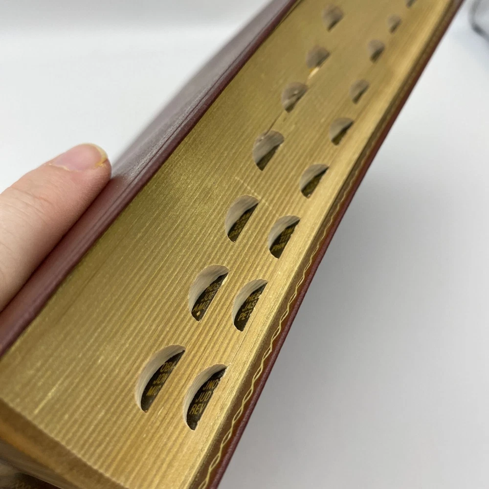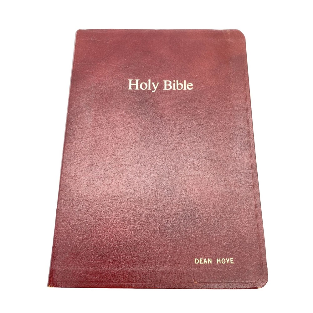 Features: • Holman Holy Bible • KJV • Giant print • Burgundy bonded leather soft cover • References • Concordance • Red letter • Color maps at the back Size: OS Condition: Pre-Owned Good Name in gold foil on the front cover. First page is inscribed. I do not see any further writing upon flipping though.
