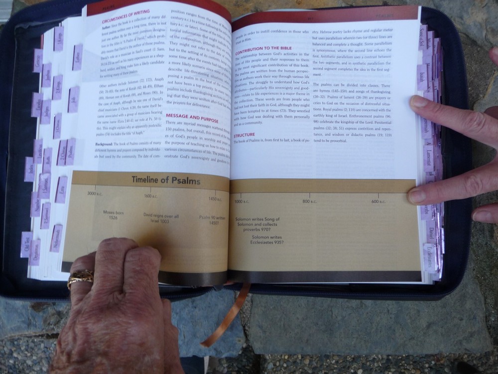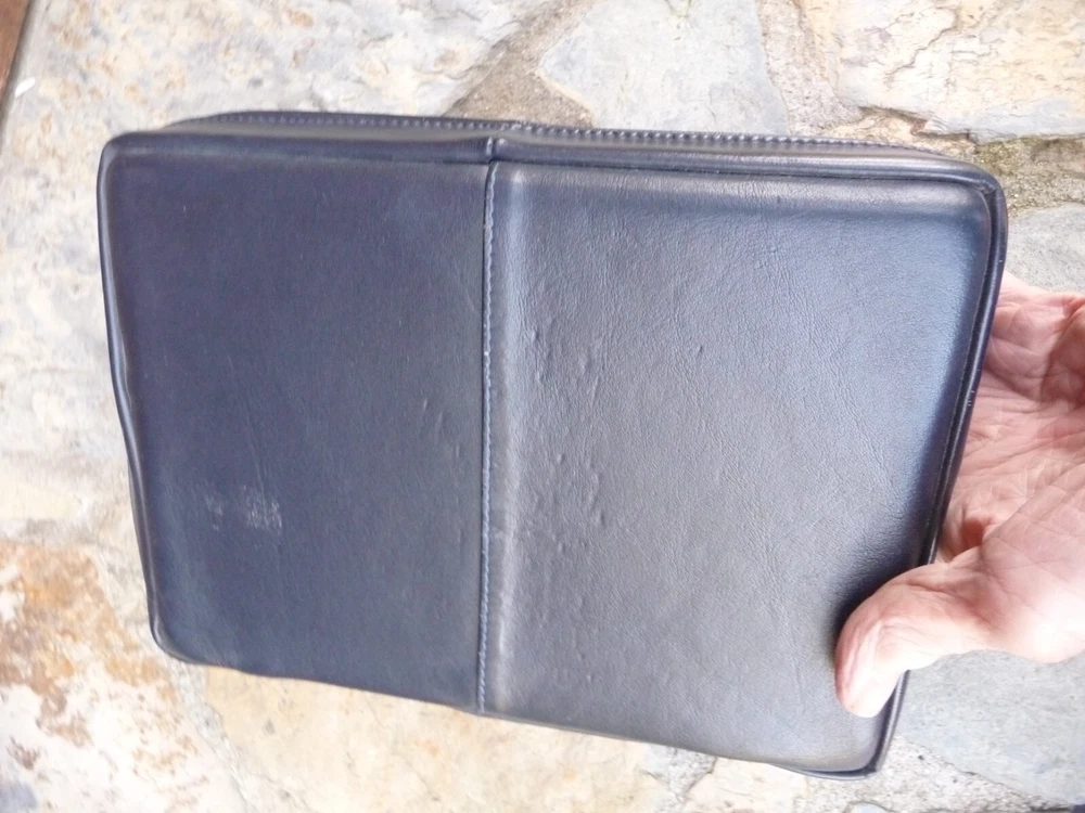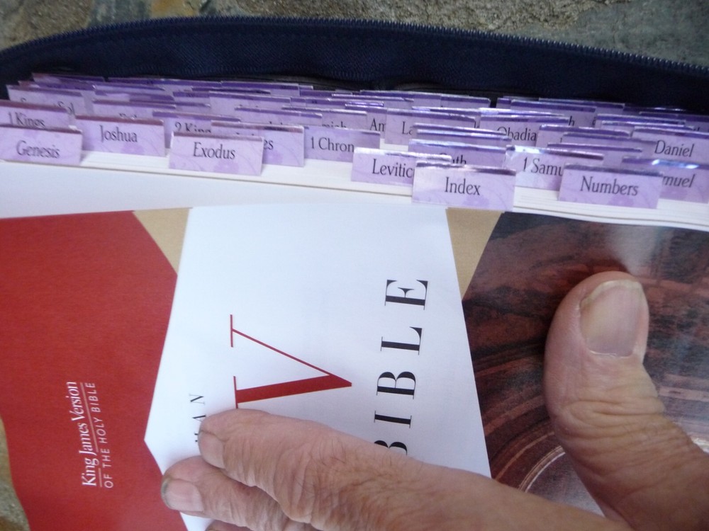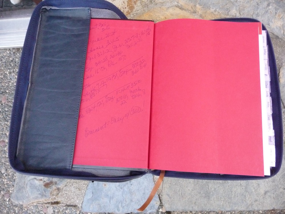 Cons - Writing as seen on inside cover. Found two or three pages with minimal underlining. Pros - Bible is a hardcover. Owner placed tabs. It also has a heavy leather Zippered pouch or case. All in al...