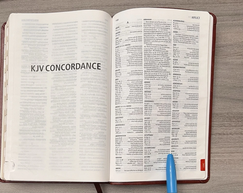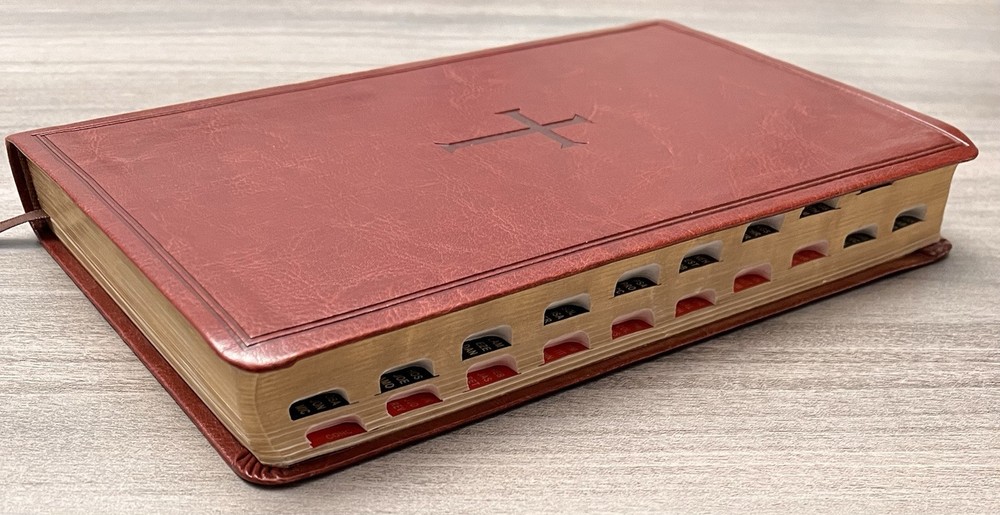 Holman KJV Ultrathin Reference Bible - Red Letter Brown LeatherTouch - Center Column References Thumb Tabs - Ribbon Marker - Concordance - Bible Helps - Color Maps Notes: I rated this Bible in acceptable condition. General aging, shelf and usage wear. Presentation page and family pages unfilled. A few locations with underlining/marks. Numerous chapters with neat, minimal, highlighting; exception is First Peter (see photos). No written comments. Extremely nice covers. Solid binding. Please view the photos for examples of content and condition. Thanks! Publisher: Holman Bible Publishers Copyright: 1998 Dimensions : ~8.40" x ~5.75"; width = ~1.38" Pages: Pre-Genesis pages + 1242 + 8 Color Maps Visit our Ebay Store for more books like this one. Our books are sold as-is. Please email any questions prior to purchasing. Thanks!