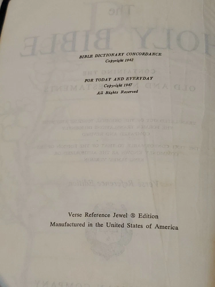 Holman The Holy Bible 1947 Concordance Verse Reference Jewel Ed. Genuine Leather. SKU BK-4
