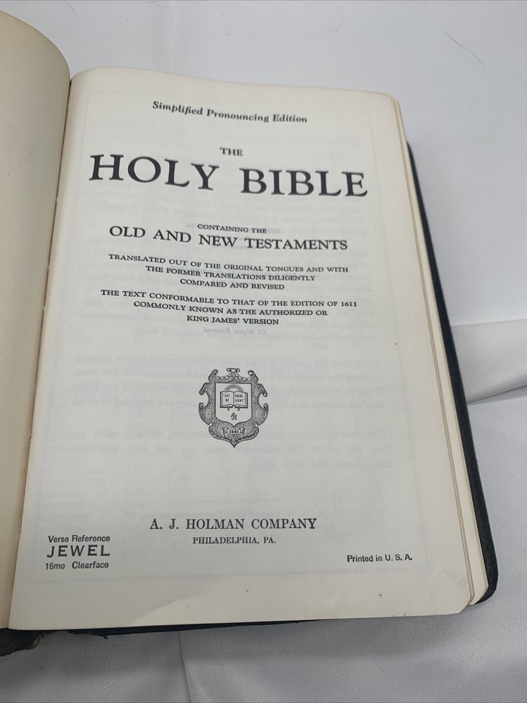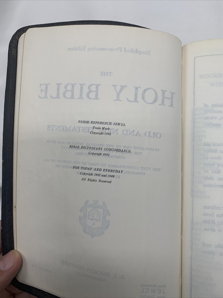 Holy Bible 1949 Holman Simplified Pronouncing Edition Black.