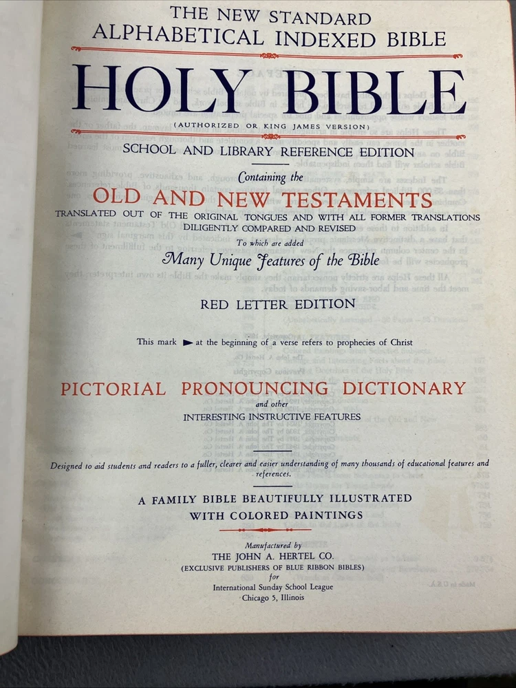 Holy Bible 1951 Blue Ribbon New Standard Reference Bible Red Letter Hertel GOOD CONDITION -- CLEAN COPY/NO MARKINGS ON THE INSIDE (see pics) *Item will be protected well for shipping and comes with a tracking number for confirmation.* I ship out items every day so expect a quick delivery!