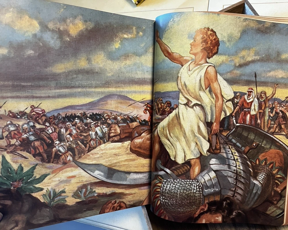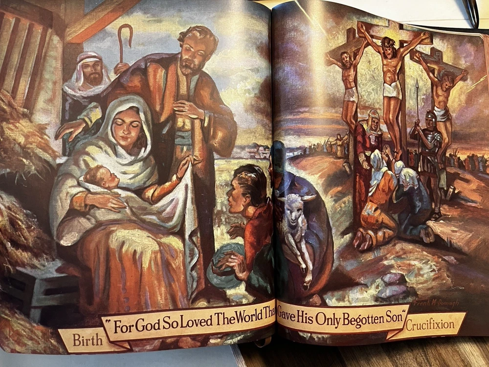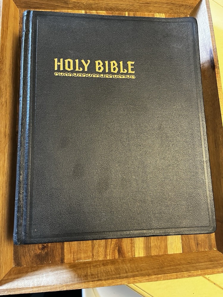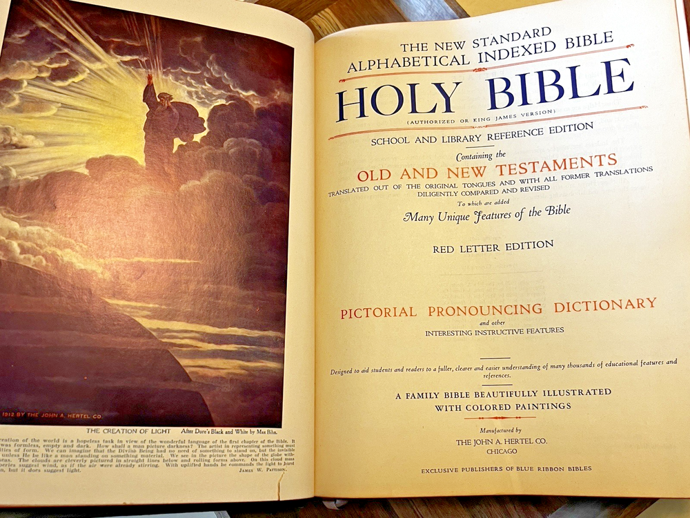 BEAUTIFUL Holy Bible 1951 Hertel Blue Ribbon New Standard Reference Red Letter Edition GOLD PAGES (edge) BIG 9.5" X 12"