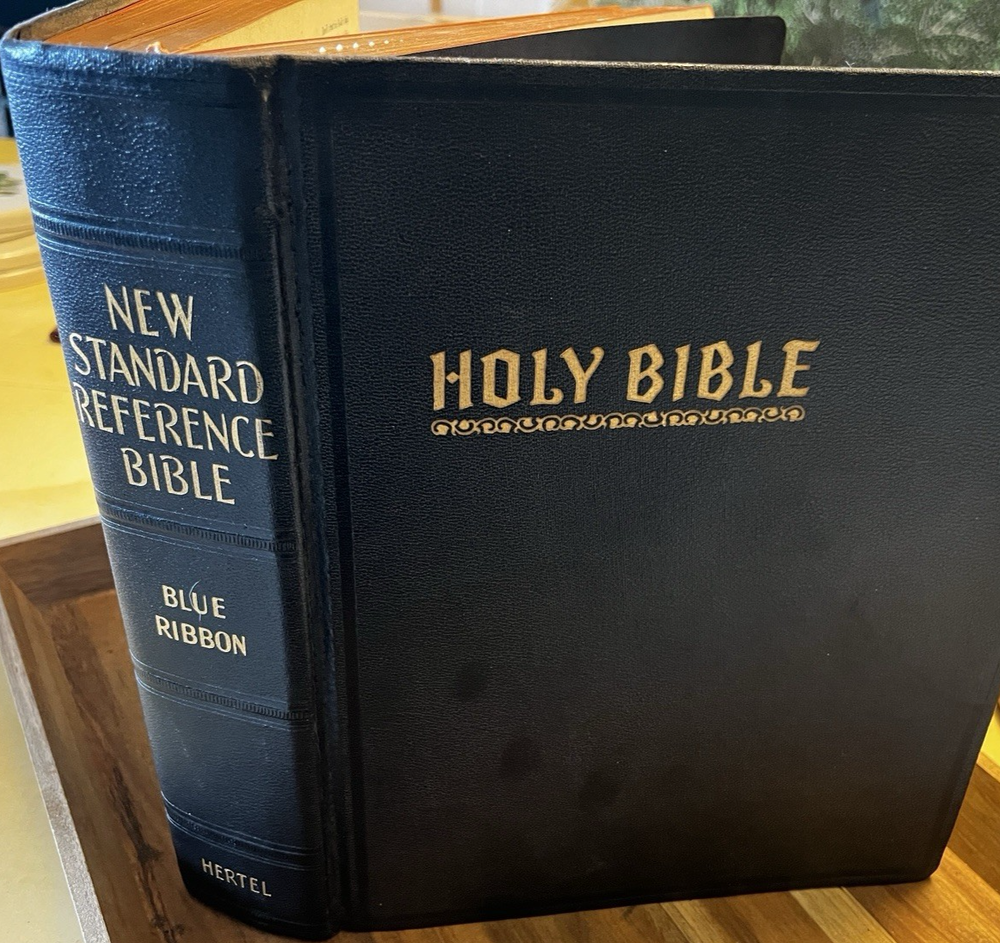 BEAUTIFUL Holy Bible 1951 Hertel Blue Ribbon New Standard Reference Red Letter Edition GOLD PAGES (edge) BIG 9.5" X 12"...