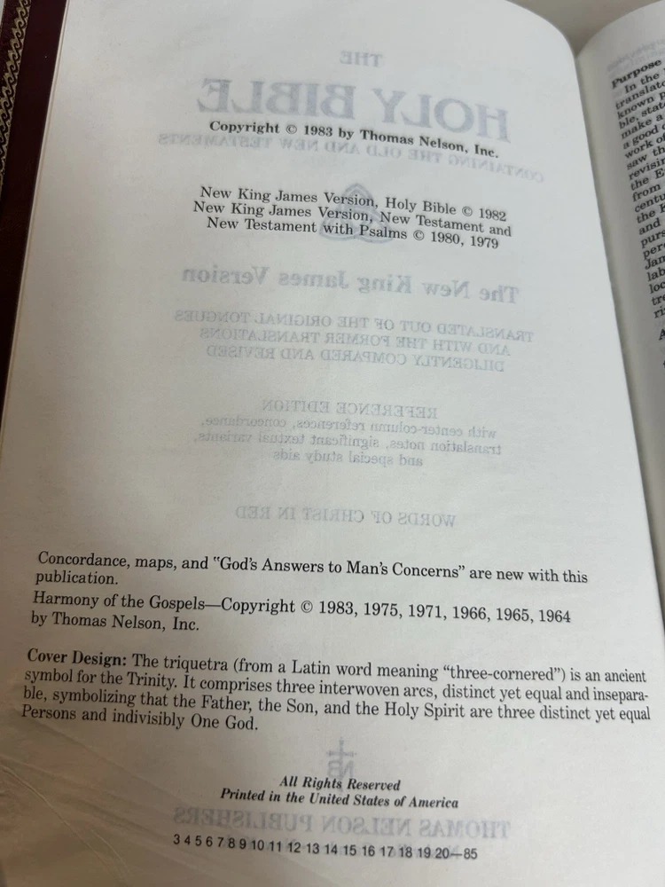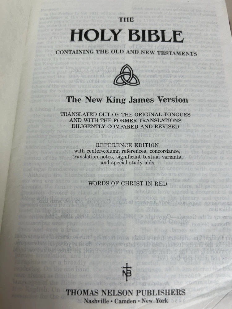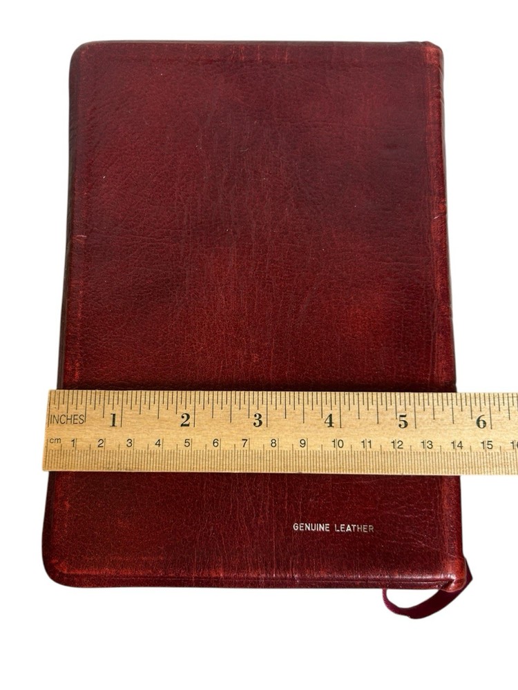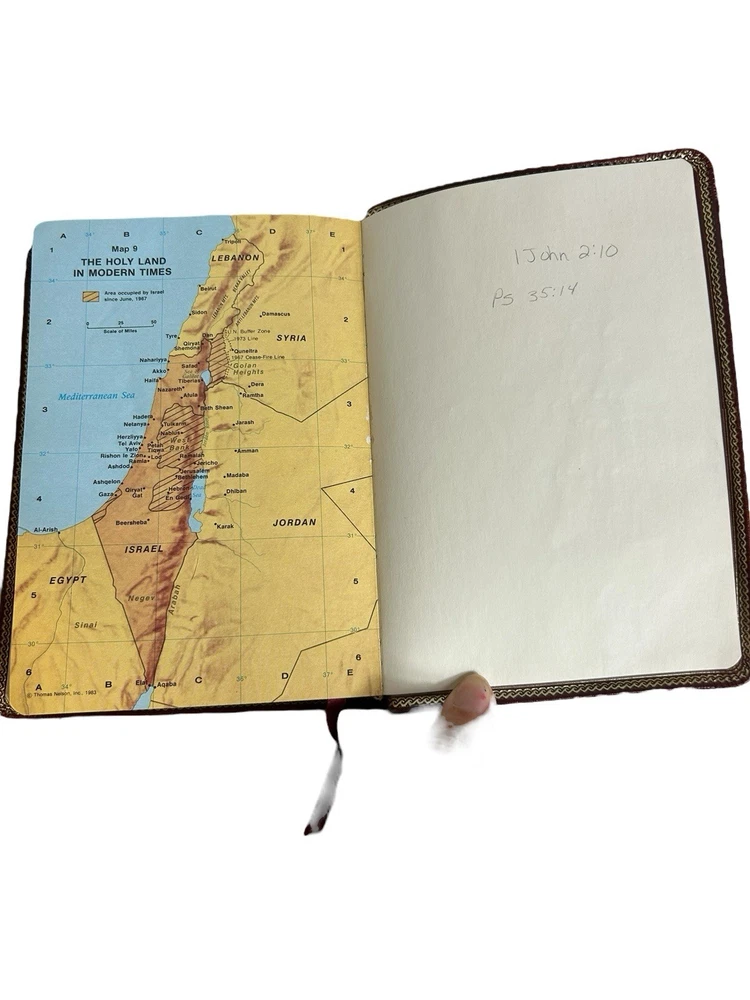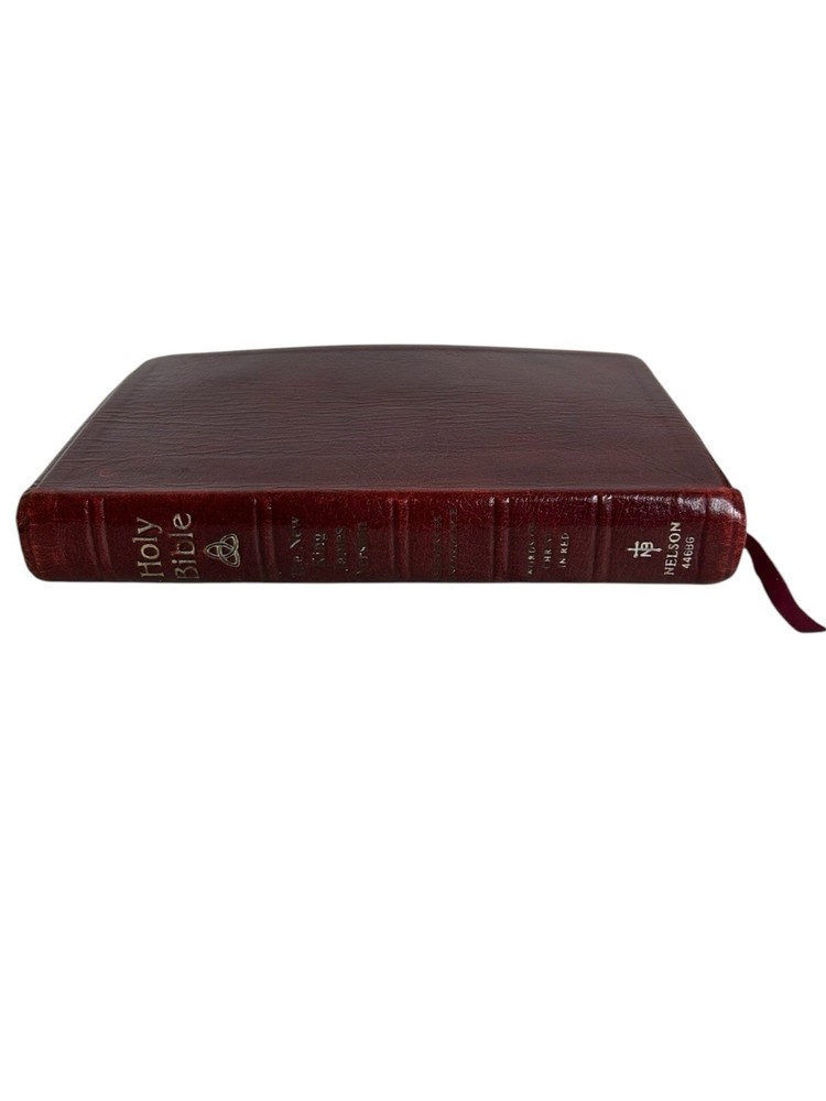 Holy Bible Vintage 1983 Thomas Nelson The New King James Version Words of Christ in Red Letter References Concordance Soft Cover Red Faux Leather Gilt Edges, Ribbon Page Marker Color Maps Some writing on first and last page, about 4-5 pages in one section have yellow highlights. Binding is intact. Five Star USA Seller, Fast Shipper We do not offer returns. Please see all photos /measurements and ask questions prior to purchase. However, if you have any issues or concerns with your order when it arrives please contact us directly. We are happy to combine shipping on multiple items from our store when possible and when requested.