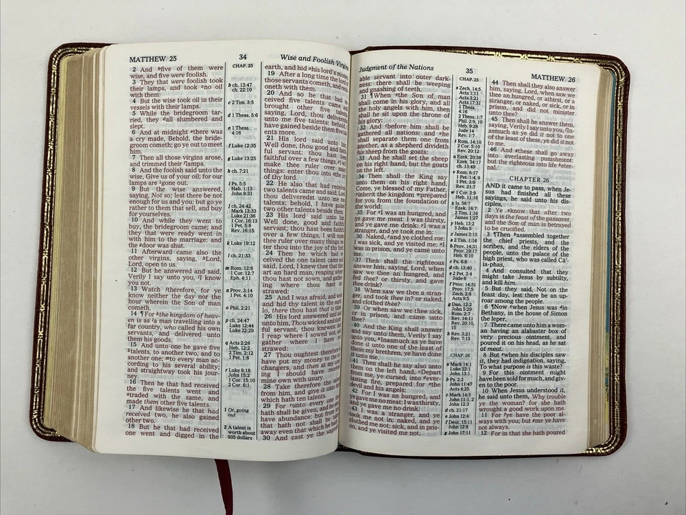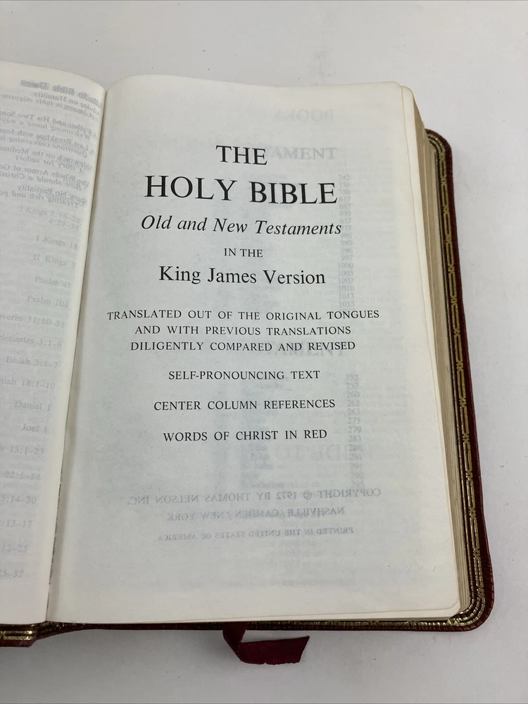 Holy Bible Center Column Reference Edition KJV Red Letter Genuine Leather 1971 GOOD CONDITION -- CLEAN COPY/NO MARKINGS ON THE INSIDE (see pics) *Item will be protected well for shipping and comes with a tracking number for confirmation.* I ship out items every day so expect a quick delivery!