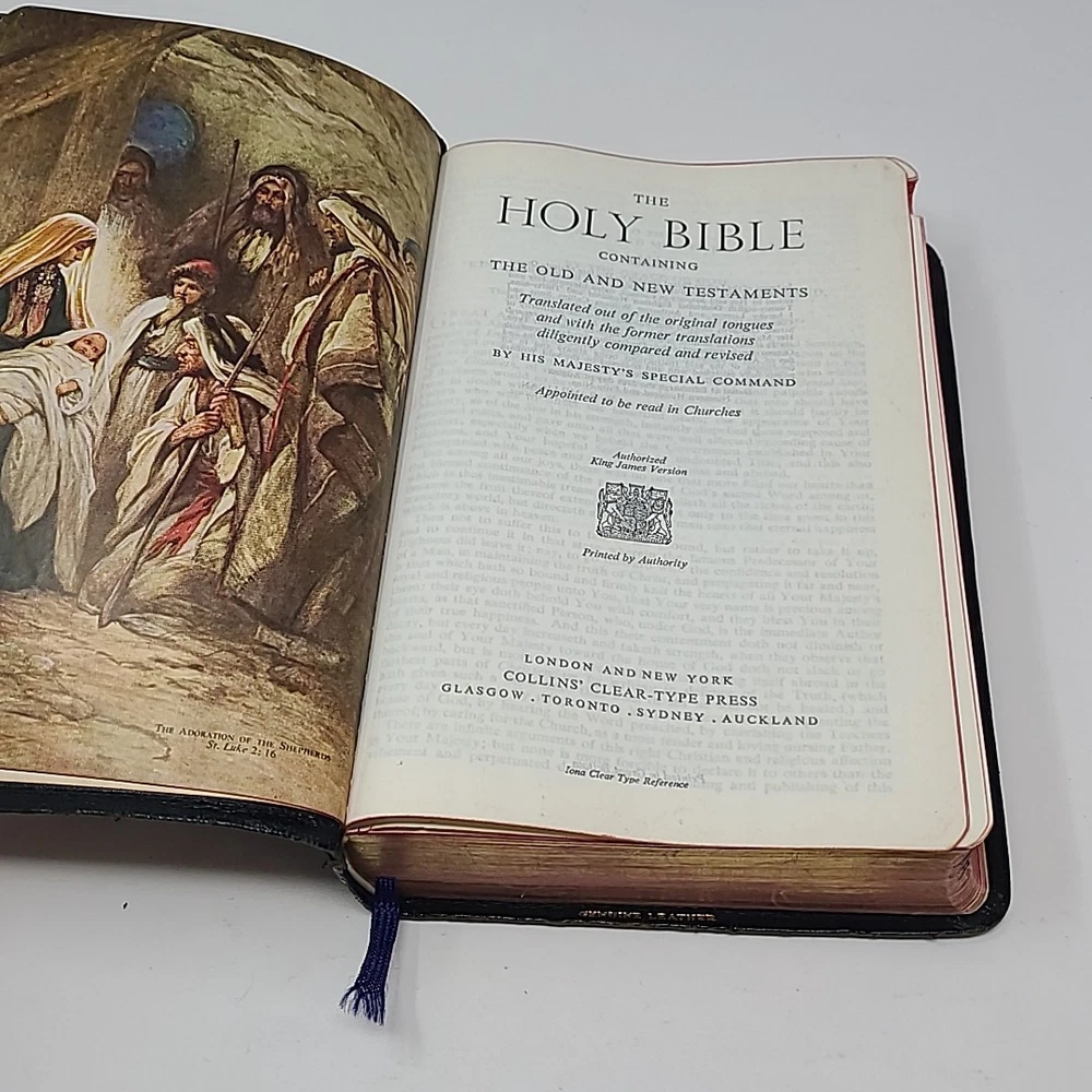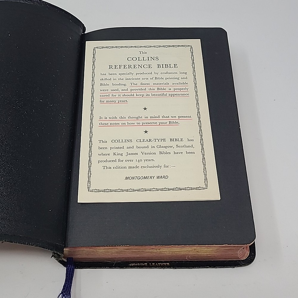 Holy Bible Collins Reference Edition Illustrated Genuine Leather 1959 Has wear on cover. Bible has owners name filled out. No other writing or highlighting in Bible. Thank You! Shipping: I use USPS Priority Mail, First Class and Media Mail (for books etc.) I also use the Global Shipping Program and additional International Shipping options (like International Priority Mail and International First Class) My return policy: If you are not satisfied with your order you can return the item within 30 days of receiving item. Please make sure you send the item back as it was received and I will issue a full refund upon receiving the item. If you have any issues at all please contact me and let me know.