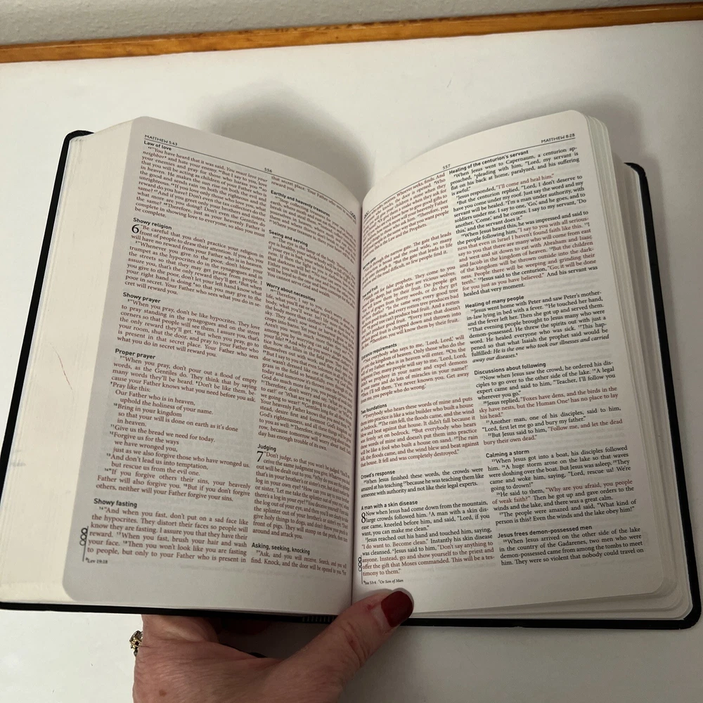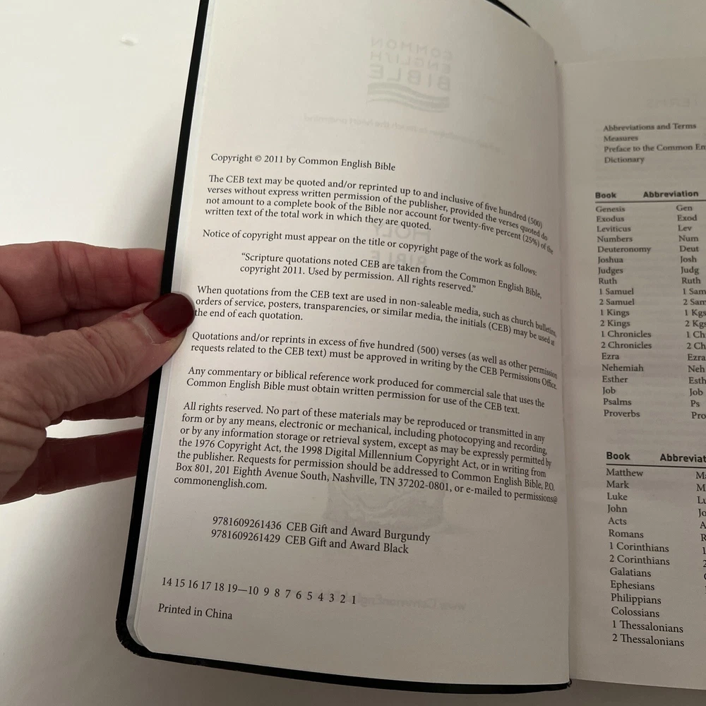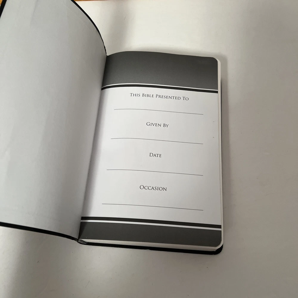 This Bible is in Very Good Condition. Very minor corner wear. Owner page is not written on. Please see photos for details. Easily giftable. 8.5 inches x 5.5 inches. Please see photos for condition. Shipping - We have several items listed and we are always happy to combine items to save our buyers shipping charges. If you have purchased more than one item today please let us know so that we can adjust the shipping or if already paid we will refund the overage. Thank you for looking at our items.