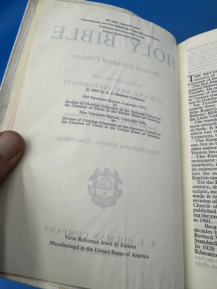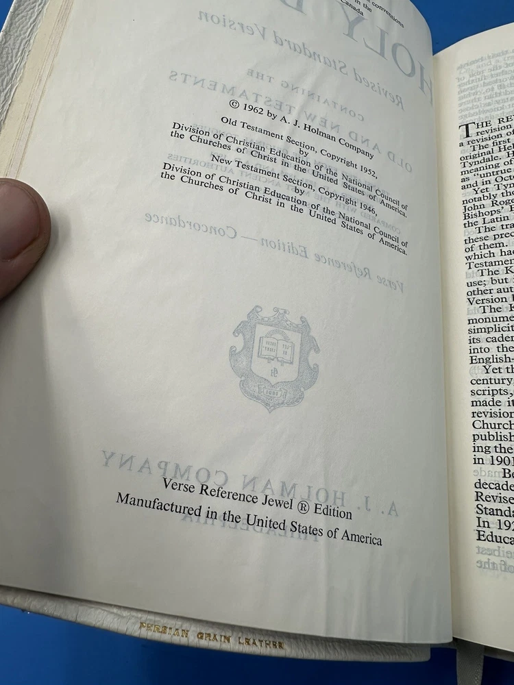 This Holy Bible Concordance RSV Verse Reference Jewel Edition Persian Grain Leather is a must-have for anyone looking to delve deeper into Christianity and the Bible. With its beautiful leather binding and intricate detailing, this book is sure to become a prized possession in any collection. Published by Holman in 1962, this book is a reference guide that provides versatile access to the Bible. Its topics include Christianity and Bibles, while the subject is specifically reference. This item is perfect for collectors and those looking for a deeper understanding of Christianity.