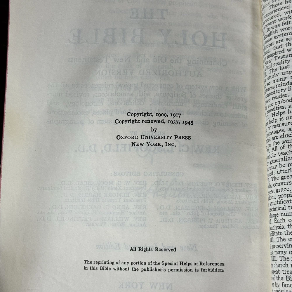 Holy Bible Concordance Scofield Reference Edition Oxford Black In good loved condition. See photos for writing and notes.