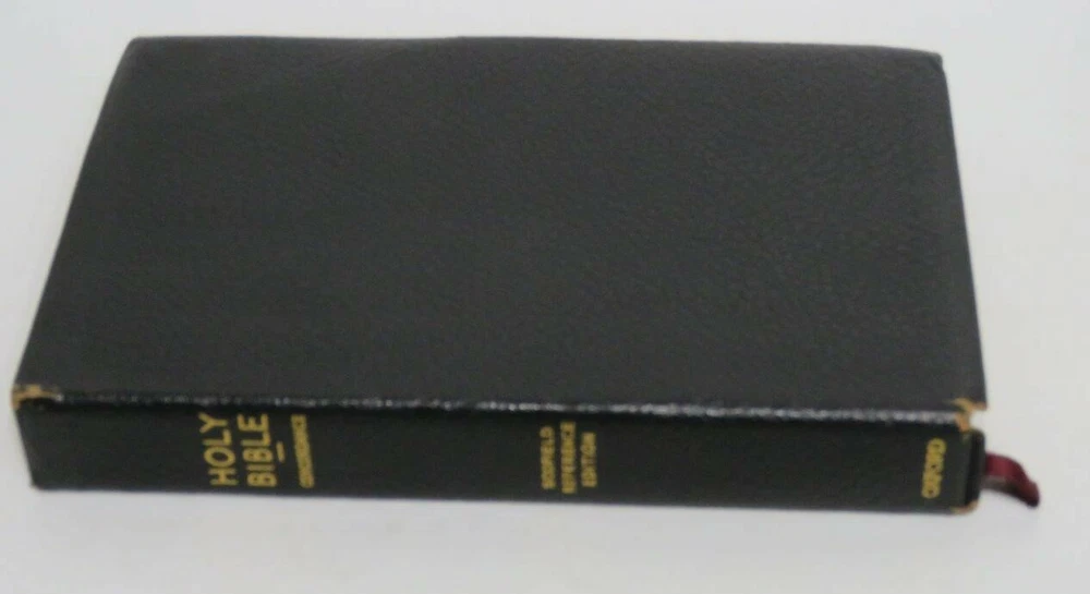INTERESTING INFORMATION : I offer several shipping services. Make sure to choose the one that is the best rate for your location. If you make multiple purchases and want to combine shipping, please request an invoice before you pay . ITEM DESCRIPTION: To see other Bibles available please click this Link . Please scroll over the item with the zoom feature to see detail. Holy Bible with Concordance - The Scofield Reference Edition by Oxford. The binding is tight and the pages are clean. There is damage to the 4 corners of the spine (see photo). Page edges have a gold gilding and tiny writing to indicate where the books begin. The book has a nice friendly and lay open nicely. The front leaf of the Bible has been removed so I don't have any information regarding print date or copyright. There are 1617 pages plus maps. Again, please scroll over the item with the zoom feature to see detail. TERMS OF SALE Please look your item over carefully before you purchase (use the magnifier).I try very hard to take representative pictures and give details about the product so that you know what you are purchasing. If my detail doesn't answer your question please write. Thank you in advance. FINAL DETAILS If you purchase multiple items don't pay until I package them and invoice you. Please note that any photos in my listings are the real item. I don't use stock photos. Ask questions if I have not been clear in my listing before you bid. Enjoy shopping. Support your local merchant ~ and your friendly eBay seller. Visit my store when you get a chance. I carry a wide variety of interesting, useful, unique, and unusual items. This is a great place for gift shopping. I am always happy to combine shipping costs. PAYMENT Please make payment within 3 days of purchase. If you need more time please write. If you change your mind please write. SHIPPING PLEASE NOTE: Books, tapes, DVD's all ship by Media Mail. It's not the quickest but it will save you lots of money. If you need something quicker just let me know and I will let you know the new shipping charges and re-invoice you for the difference. PACKAGING: I use used boxes and fluff. I do this because I care about the planet and all who live here and my future generations. Just thought you should know. SHIPPING COSTS: I charge actual shipping to your location. SHIPPING TIME: I usually ship the same or next day after your purchase depending on whether my mail has already been picked up. If you purchase on a Friday after mail time I may not be able to ship until the following Monday. TIMELINE: When I ship you will receive a letter from PayPal with your tracking information. There is a link on eBay so you can check the progress of your package. INTERNATIONAL: INTERNATIONAL BUYERS CUSTOMS: I welcome international bidders. Import duties, taxes and charges are not included in the item price or shipping charges. These charges are the buyer's responsibility. Please check with your country's customs office to determine what these additional costs will be prior to bidding/buying as I don't have that information. I do not declare merchandise as gifts for international sales and I don't put a lesser value on the customs form. Please don't ask. INTERNATIONAL BUYERS POSTAGE: If you are an international buyer postage will be calculated according to your location. International postage can be costly. Most items less than 4 pounds can ship by First Class. Anything over 4 pounds will have to ship Priority mail. Size matters. Some items can't ship to certain international locations because of size restrictions. INTERNATIONAL BUYERS HANDLING FEE: I also charge a $2 handling fee for International shipments to help defray the cost of insurance (included in the shipping price you see for your area). Again, I thought you should know. ABOUT US We find the treasures you've been looking for! I treat all of my customers with the greatest courtesy. If you feel there is a problem please write. Hard to believe I know, but, I have made mistakes ~ and I'm pretty sure I haven't made my last one. The good news is that I always set my mistakes to right if given the chance.