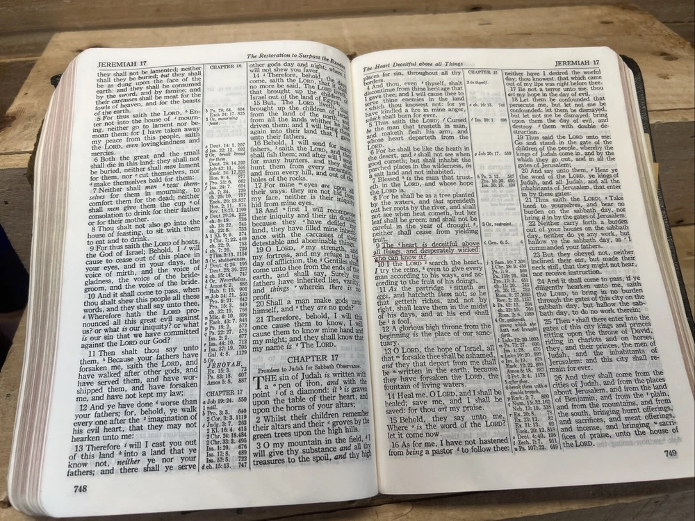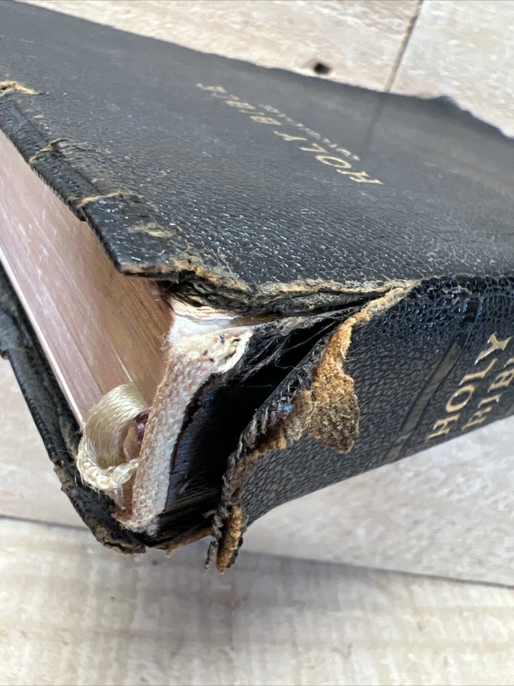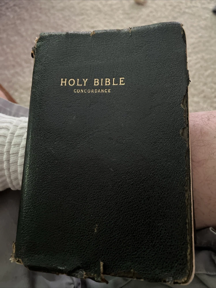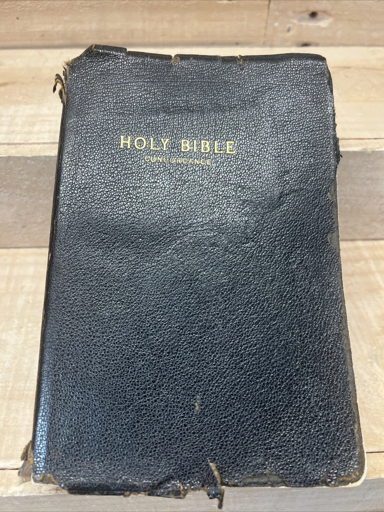 Holy Bible Concordance World Publishing 1945 King James Version, Pictures Fair preowned vintage condition, cover has damage, red underlining (pictured)
