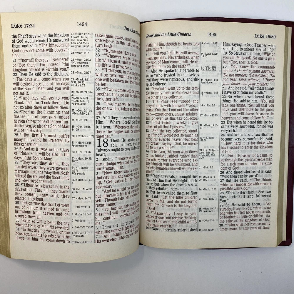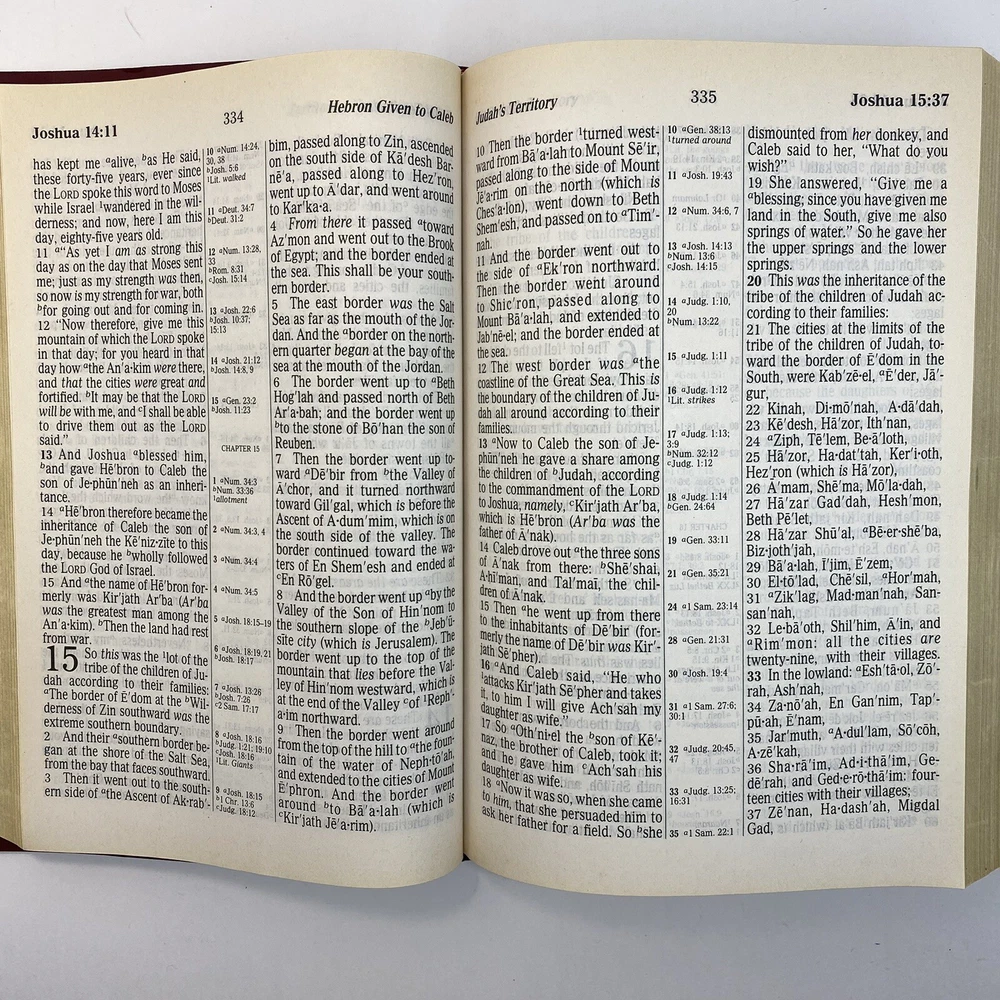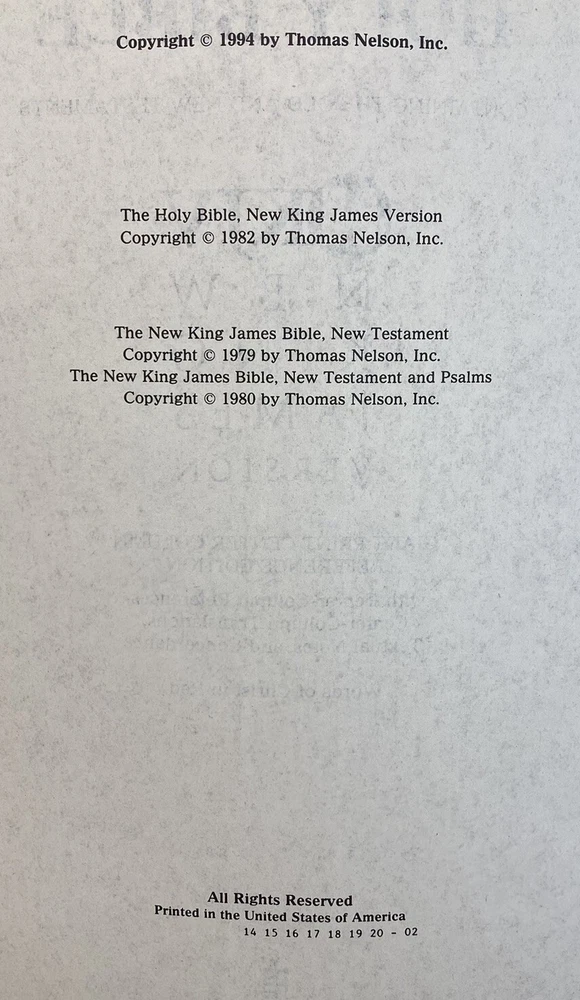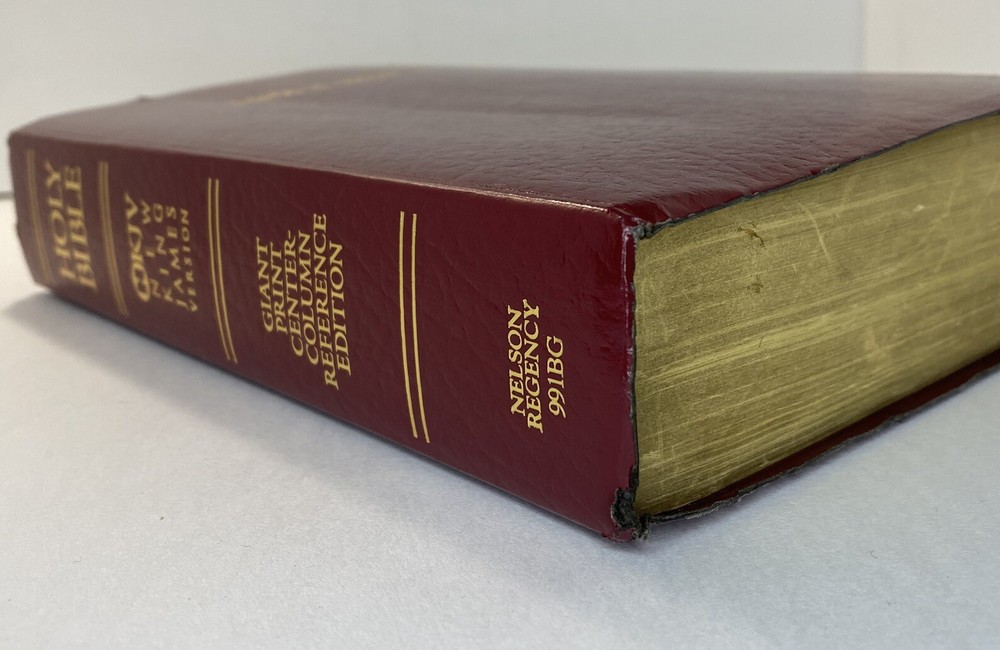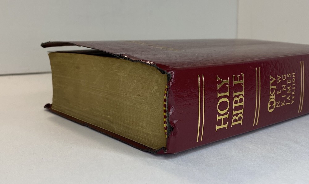 Holy Bible - New King James Version Giant Print Center Column Reference Red Letter 991BG 1994 Good condition. Assuming that former owner removed any dedication pages. Please see pictures.