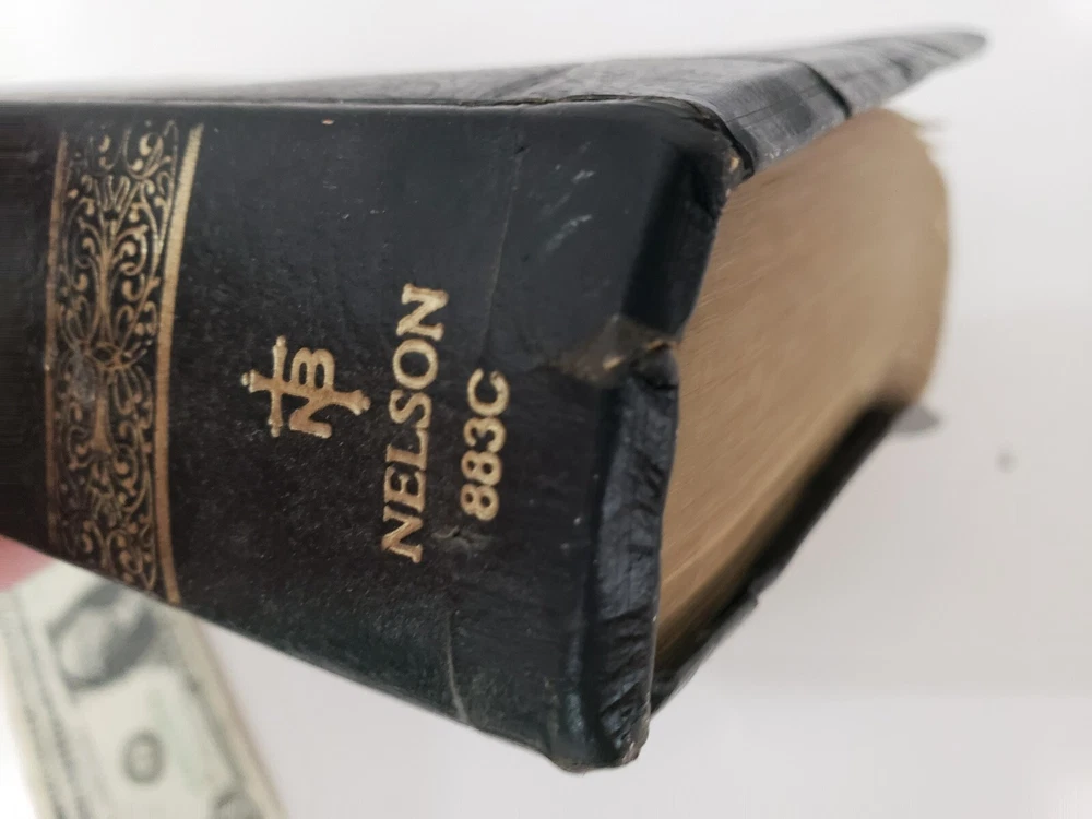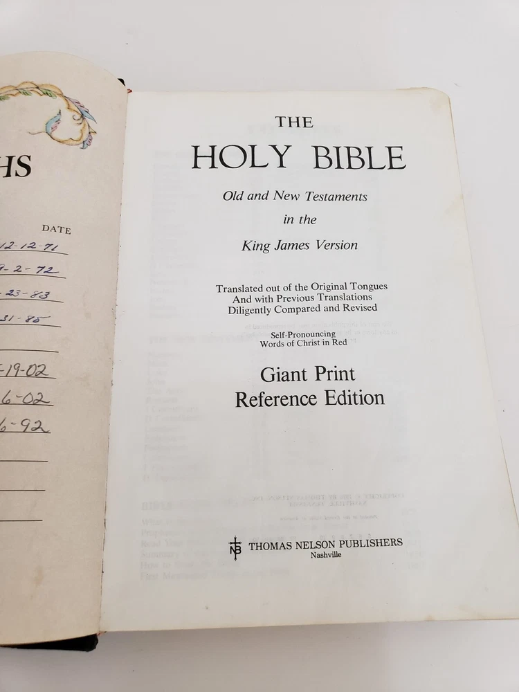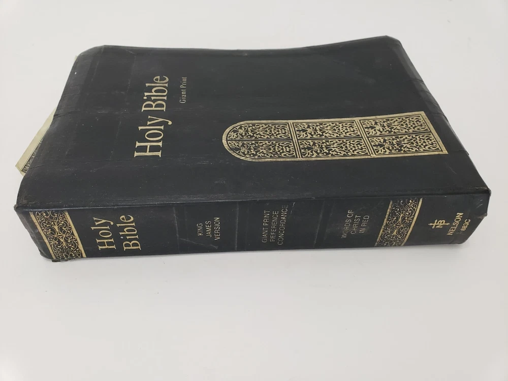 Holy Bible Giant Print Reference Edition - Thomas Nelson 1976 - Black Leatherbound - Only what is shown in the pics is included Condition - Fair Condition - Covers show wear - all the front section is filled out - there is some scattered underlining and highlighting and notes inside - Still very usable Please EMAIL ME FIRST if you experience any problems before opening a dispute. Items ship out within 1 Business Day - (Items purchased on Friday, Saturday or Sunday will ship out the following Monday - 1 Business Day) Books, DVDs, CDs and Educational Materials will ship via USPS Media Mail I ONLY use Ebay Global Shipping Program for international shipping - NO Exceptions