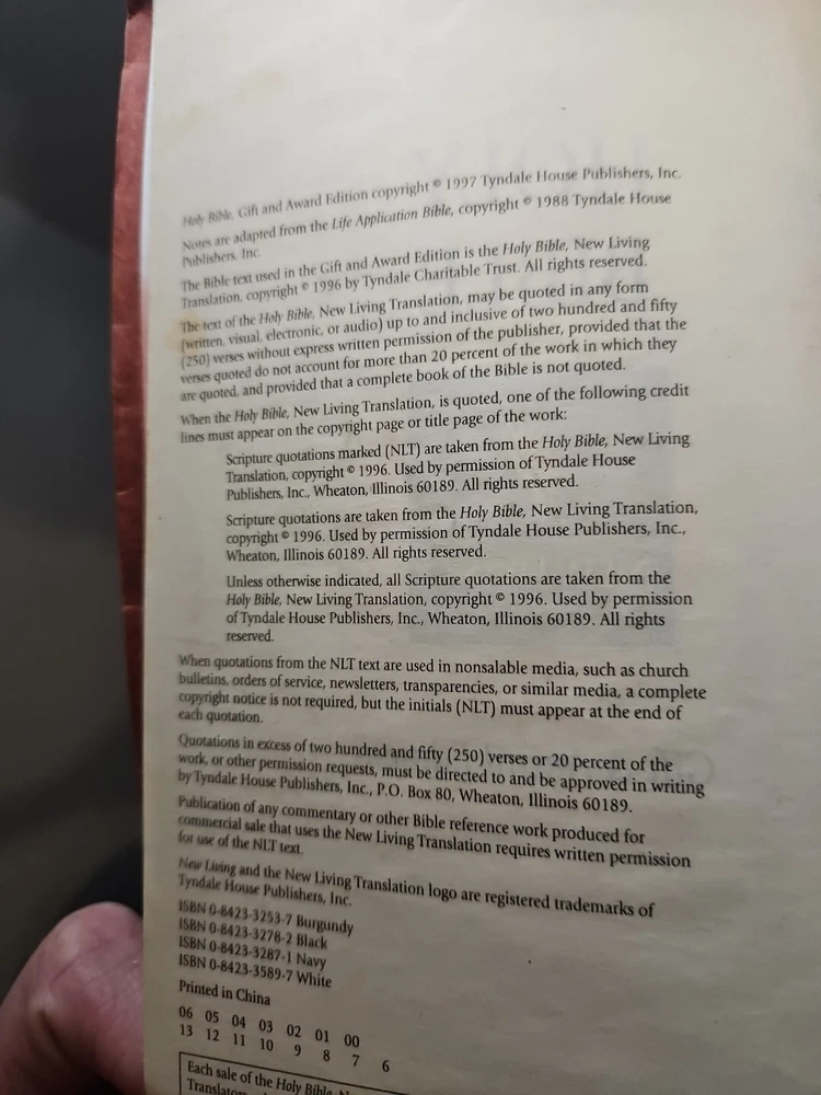 Holy Bible Gift And Award Edition 1997 Tynsdale. Pages Flagged With Reference