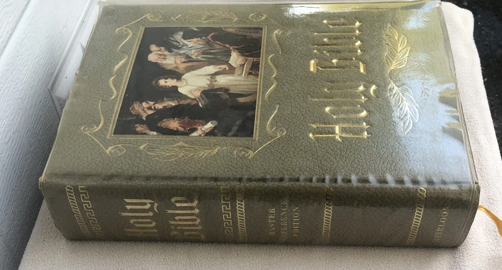 Exact item pictured. Bible has a plastic protector over it. See pics for details...