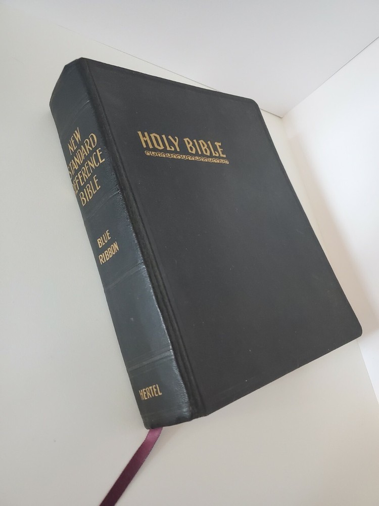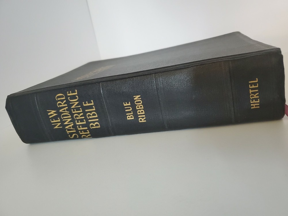 Holy Bible Hertel Blue Ribbon New Standard Reference Red Letter Edition 1957 12”.