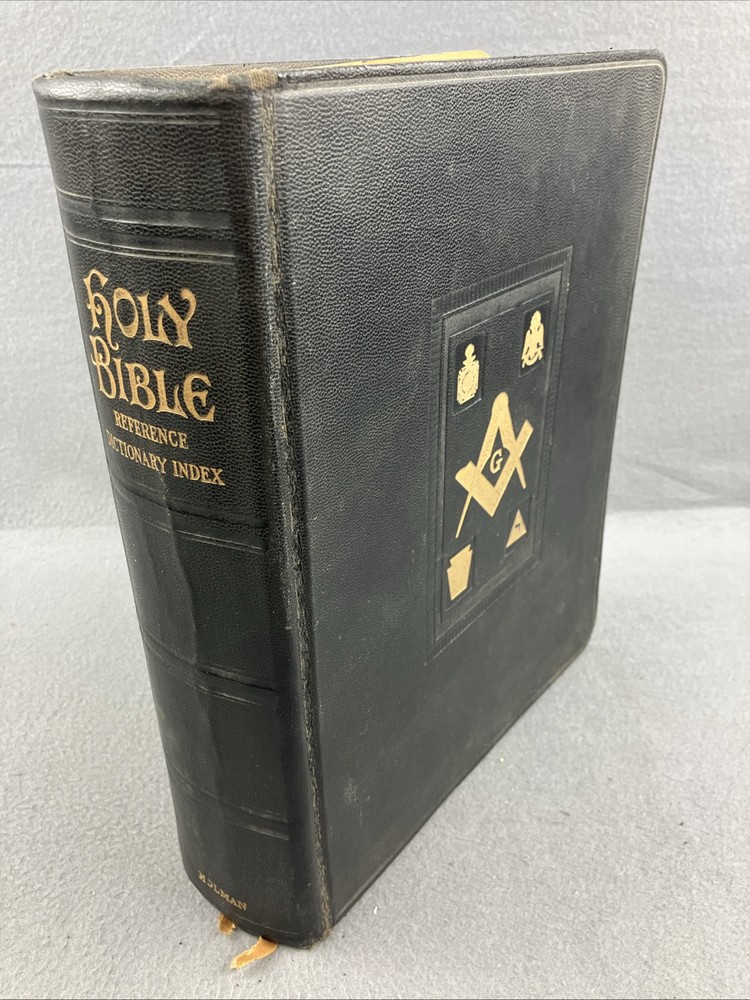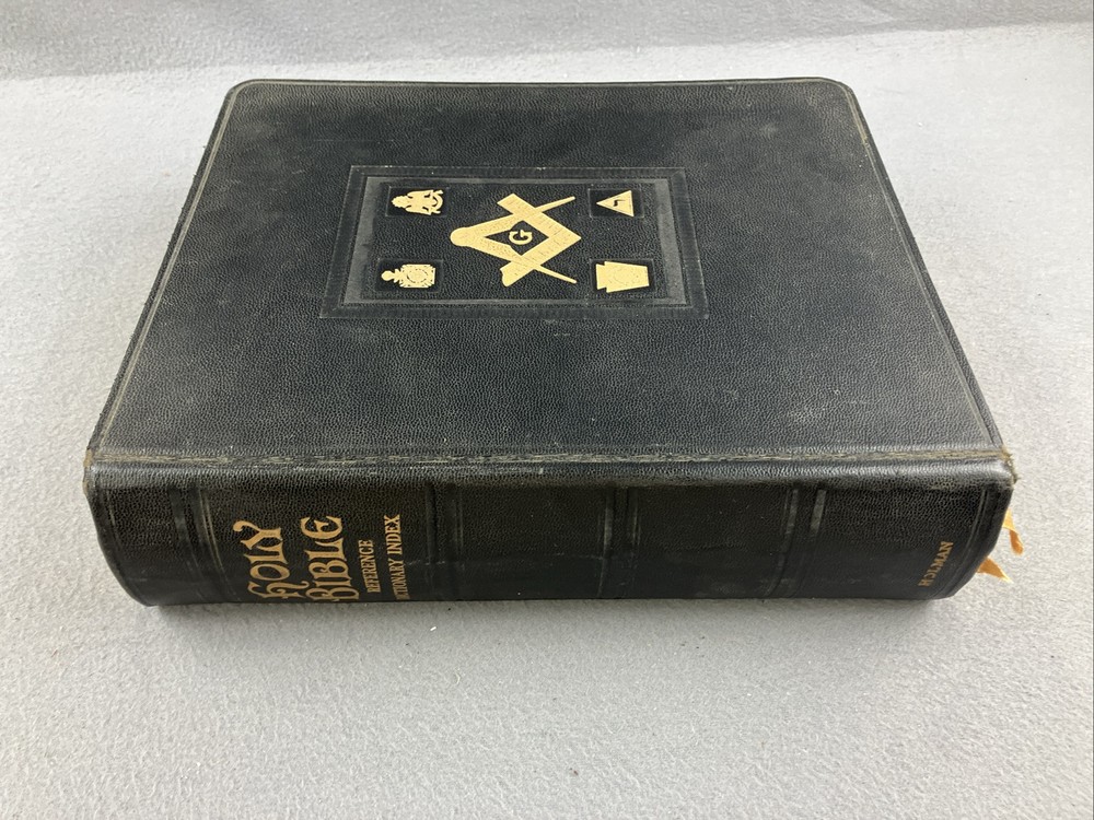Holy Bible Holman Masonic 1958 Reference Dictionary Index, Full Color Plates, Leather GOOD CONDITION -- CLEAN COPY/NO MARKINGS ON THE INSIDE (see pics) *Item will be protected well for shipping and comes with a tracking number for confirmation.* I ship out items every day so expect a quick delivery!