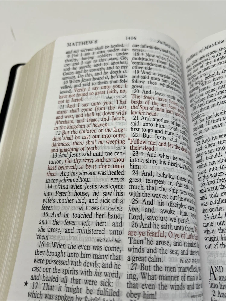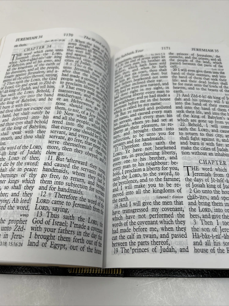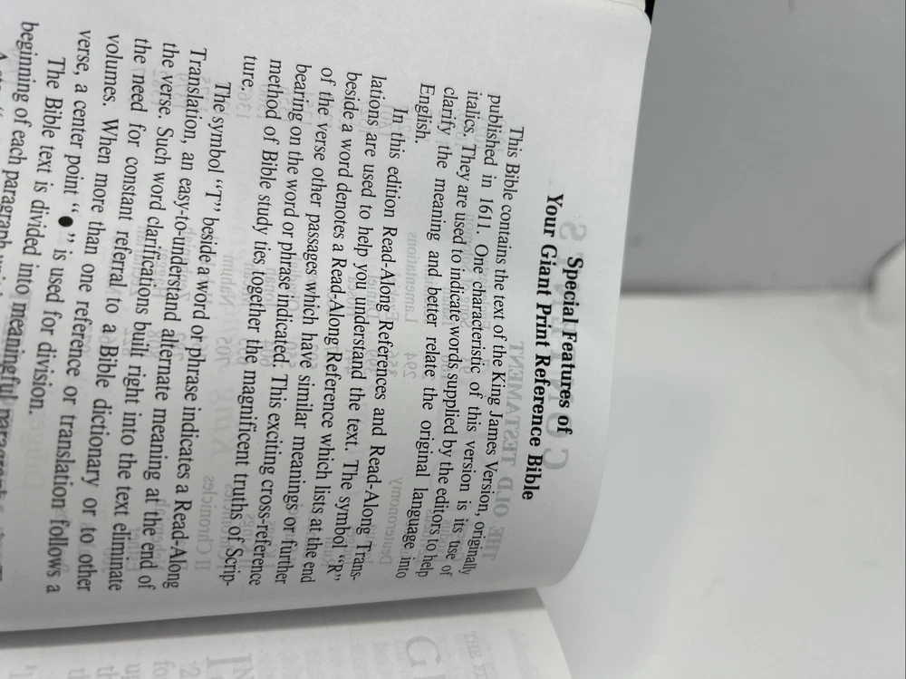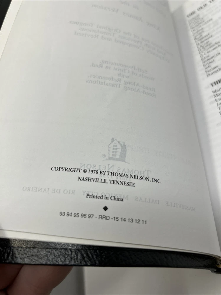 Holy Bible KIng James Version Giant Print Referenced RED LETTER 1976 Black. Bible does have previous owners name embossed on cover.