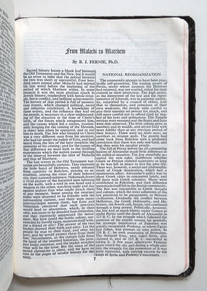 HOLY BIBLE 1960s. 1,524pgs. Softcover edition (leather bound). Published by The World Bible Publishing Company. Good; some cover/spine wear. Some markings. Approx: 6 1/2" x 9 1/2" x 1 1/2", 2lb 7oz. Complete and unabridged. King James Version (KJV). Red letter edition (Words of Christ in red ink). Center reference column. Concordance. Maps. Illustrations. Study Helps: Summary of the Books of the Bible; From Malachi to Matthew; Jewish Sects and Their Beliefs; Proving the Old Testament; Great Periods of Bible History; Items of Information Concerning the Bible; Parables and Miracles of the Bible; The Languages of the Bible. I do not use stock photos. Please read entire listing and look at photos provided before purchasing. All items sold "as is." All sales final. SHIPPING METHOD: Media Mail. Shipping total is calculated by Ebay. I will ship your item as fast as I can after purchase. INFORMATION: I ship only to addresses in the United States. Please make sure that your mailing address is correct before you buy. I cannot ship on weekends (Saturdays and Sundays) or federal holidays. Handling time is (5) business days, though often less. ( Please note that Ebay considers the first day following purchase to be day one of the potential five, and does not include either weekends or federal holidays ). I try my best to describe each item, though please bear in mind that I am not a professional appraiser. Thank you very much for looking at my item! I invite you to look at all of the many other items that I am currently selling on Ebay. Have a great day! :)