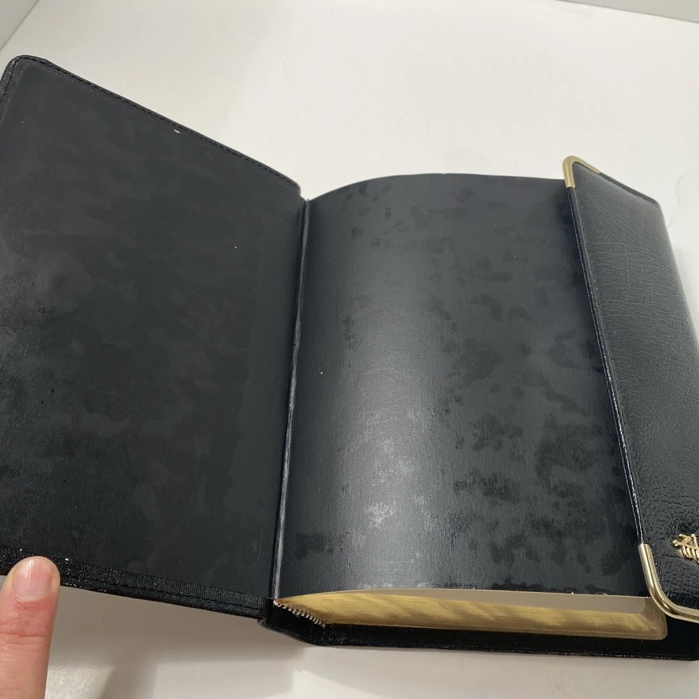 It is sticky where the closure part connects together. Didn’t attempt to clean it with fears of damaging it. This rare edition of the Holy Bible is a must-have for spirituality and religious study. The 1976 Thomas Nelson Giant Print Reference Bible is written in English and features a bonded black leather cover. The book is in a vintage hardcover format and is perfect for those looking for a spiritual journey. The book title, The Holy Bible, is a timeless piece that will help individuals on their path to enlightenment. The author, Thomas Nelson, is renowned for his captivating writing style that makes the Bible easy to understand. The book is categorized under Books & Magazines and Books, making it accessible to all. Get your hands on this timeless piece and embark on a spiritual journey like no other.