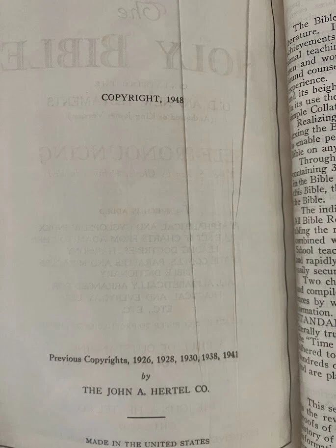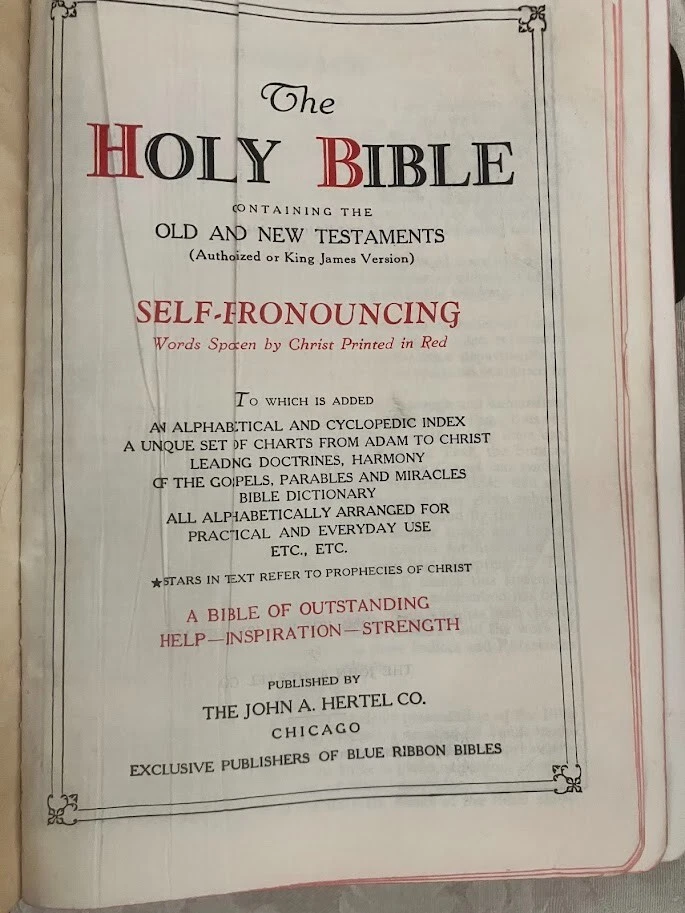 This vintage Holy Bible is a treasure with its illustrations and center column references. It would make a great everyday bible if it were recovered as the pages are in excellent condition. It is a co...
