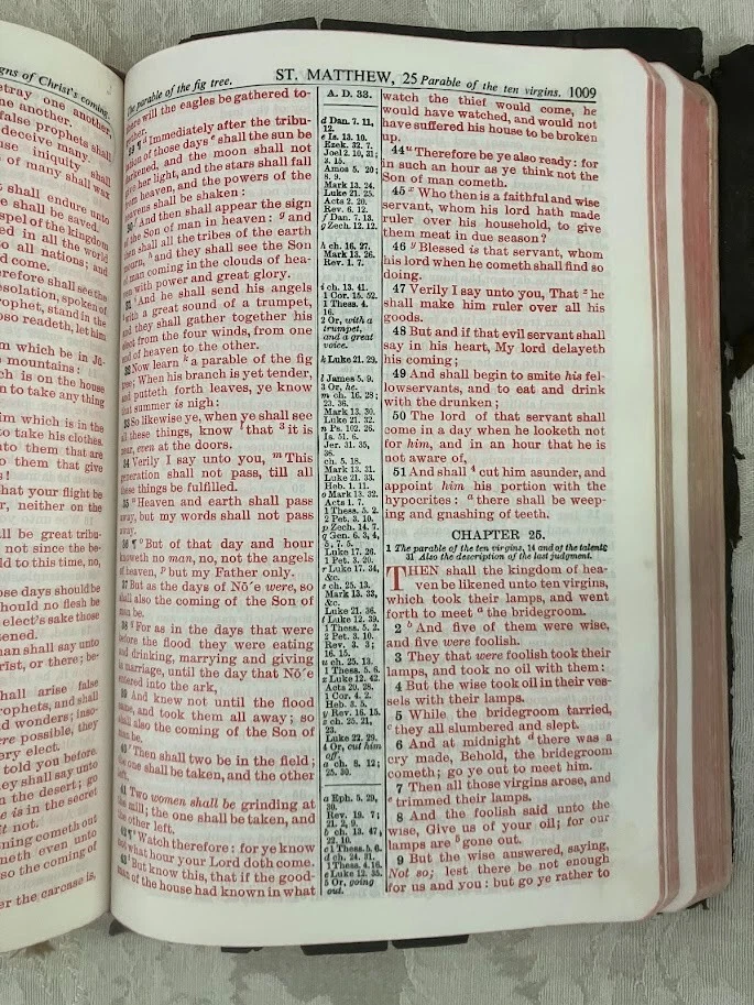 This vintage Holy Bible is a treasure with its illustrations and center column references. It would make a great everyday bible if it were recovered as the pages are in excellent condition. It is a collectible piece of history.