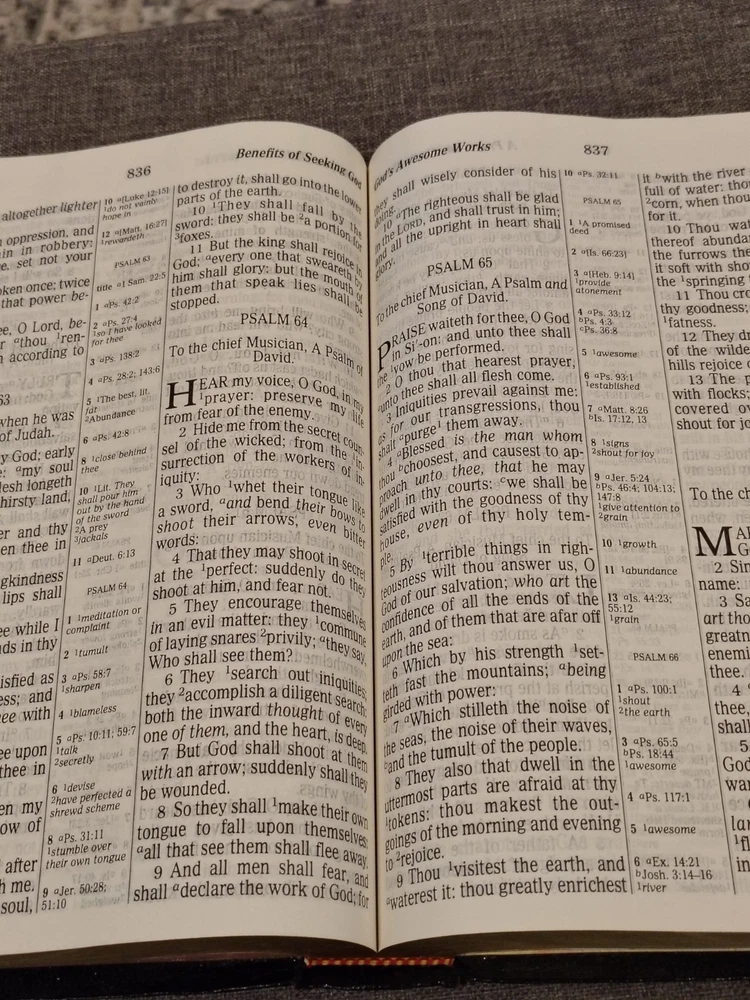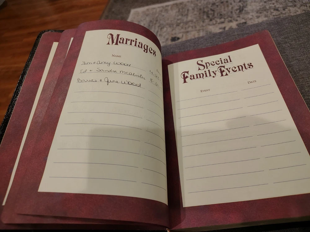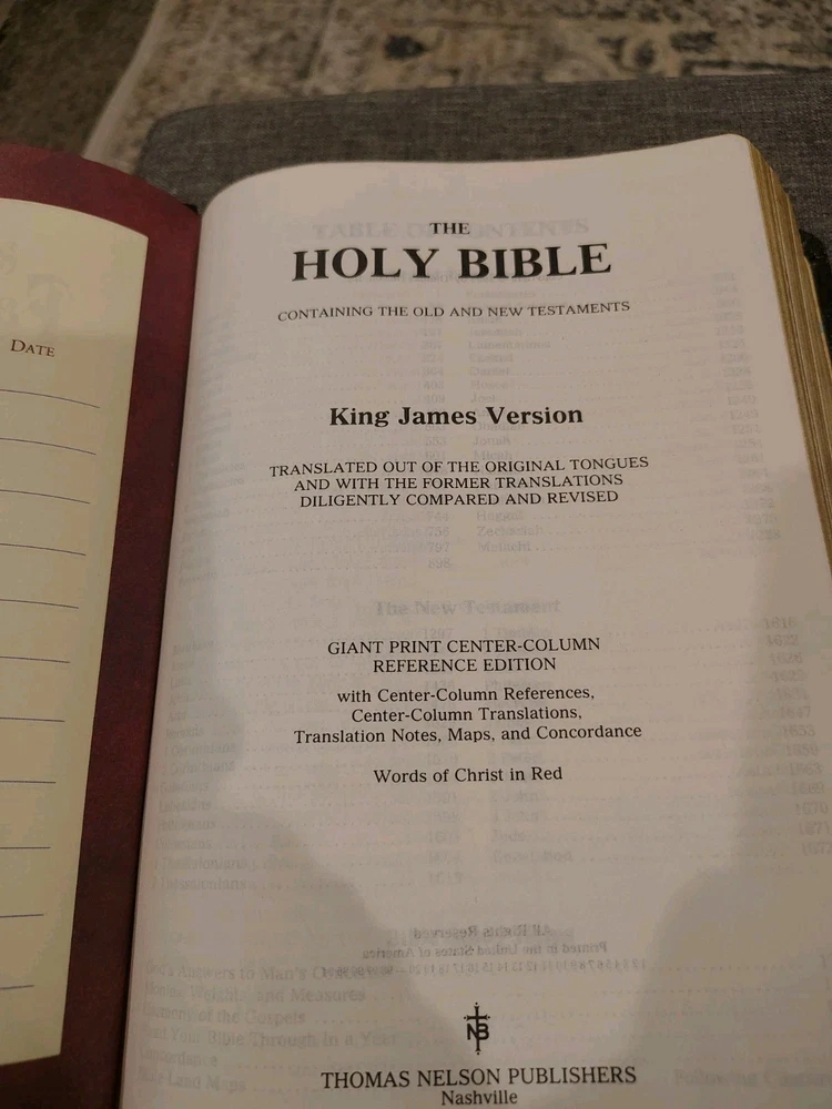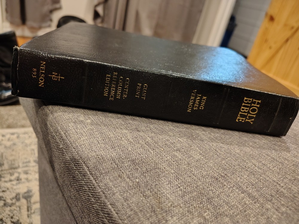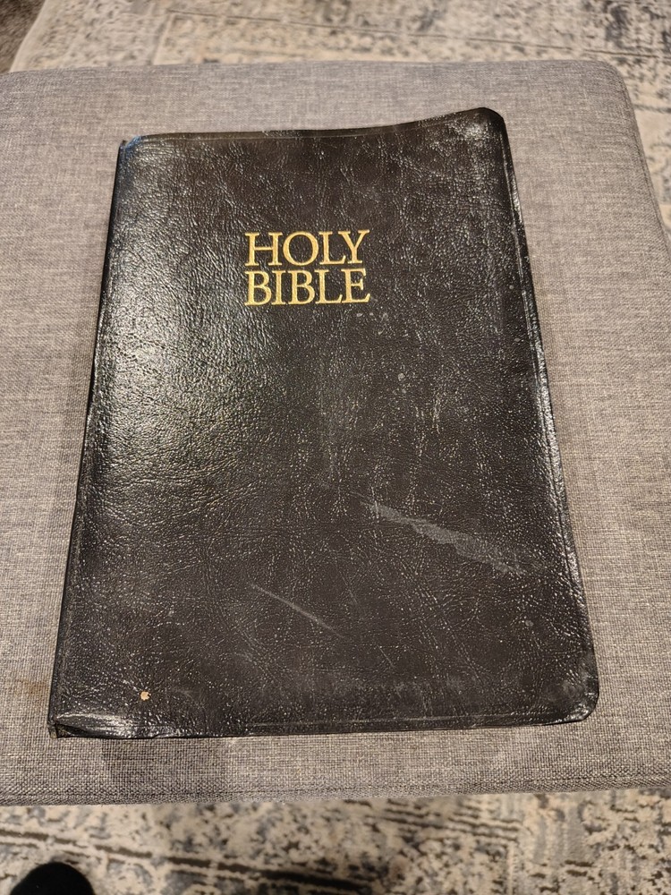 A classic Bible that checks all the boxes people love: - The King James Version (KJV) - Red Letter edition with the words of Jesus in red - Giant print for easy reading - Multiple Color maps - A Center Column cross-reference framework that allows for easier viewing of cross-referenced verses - Translation notes - Articles and charts for better understanding - Concordance This Bible has some family history written on the first pages it has some minor marks on the cover. I could not find any other writing or highlighting in the book. Please look at photos to assess condition further.