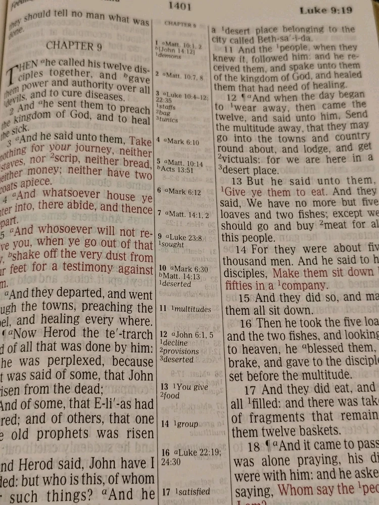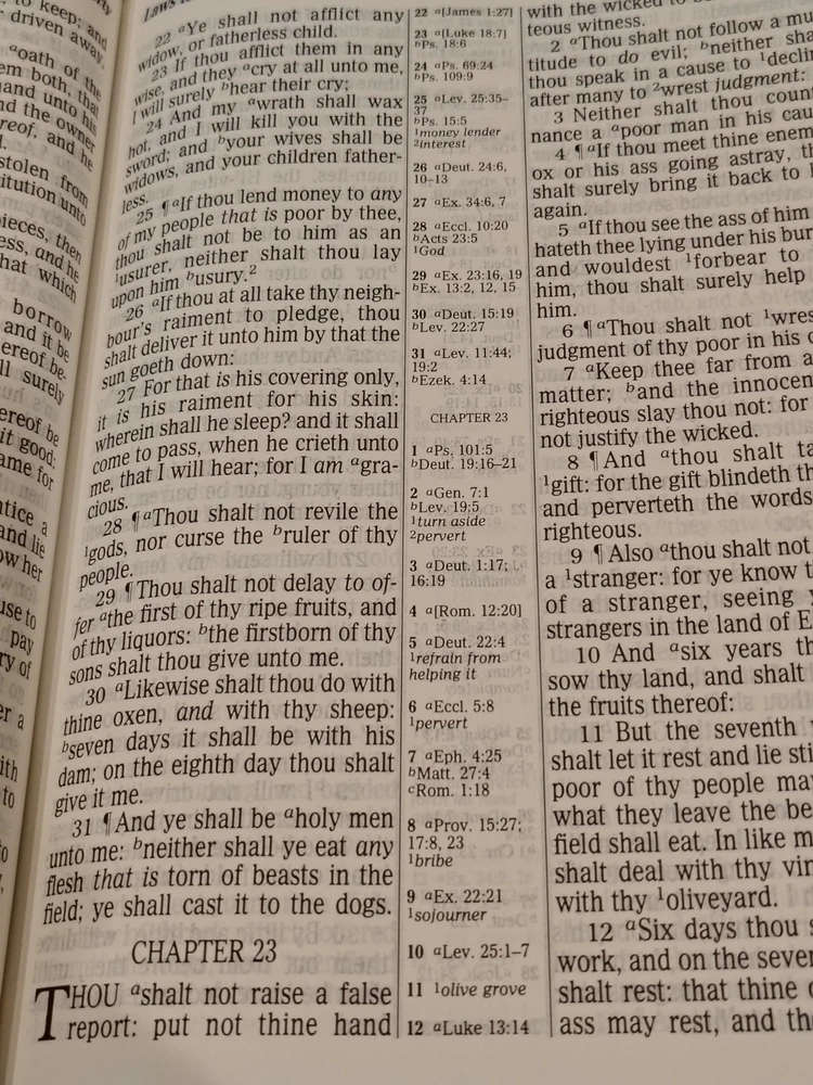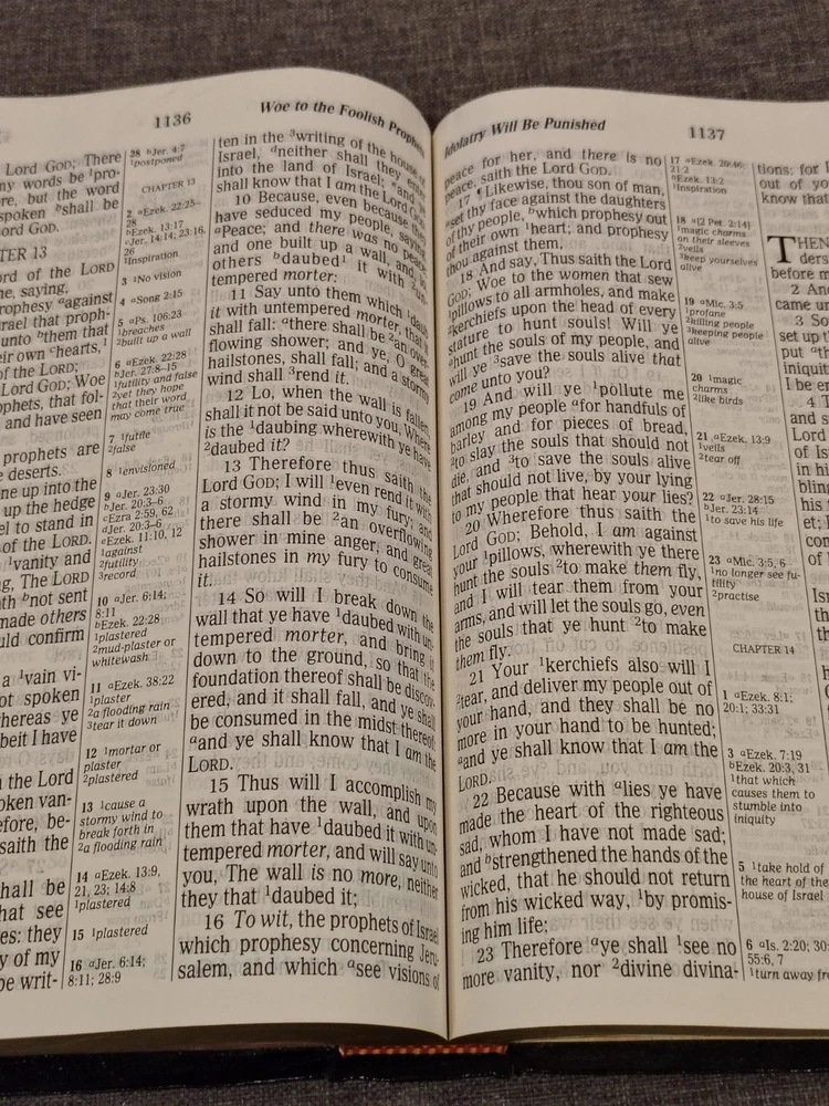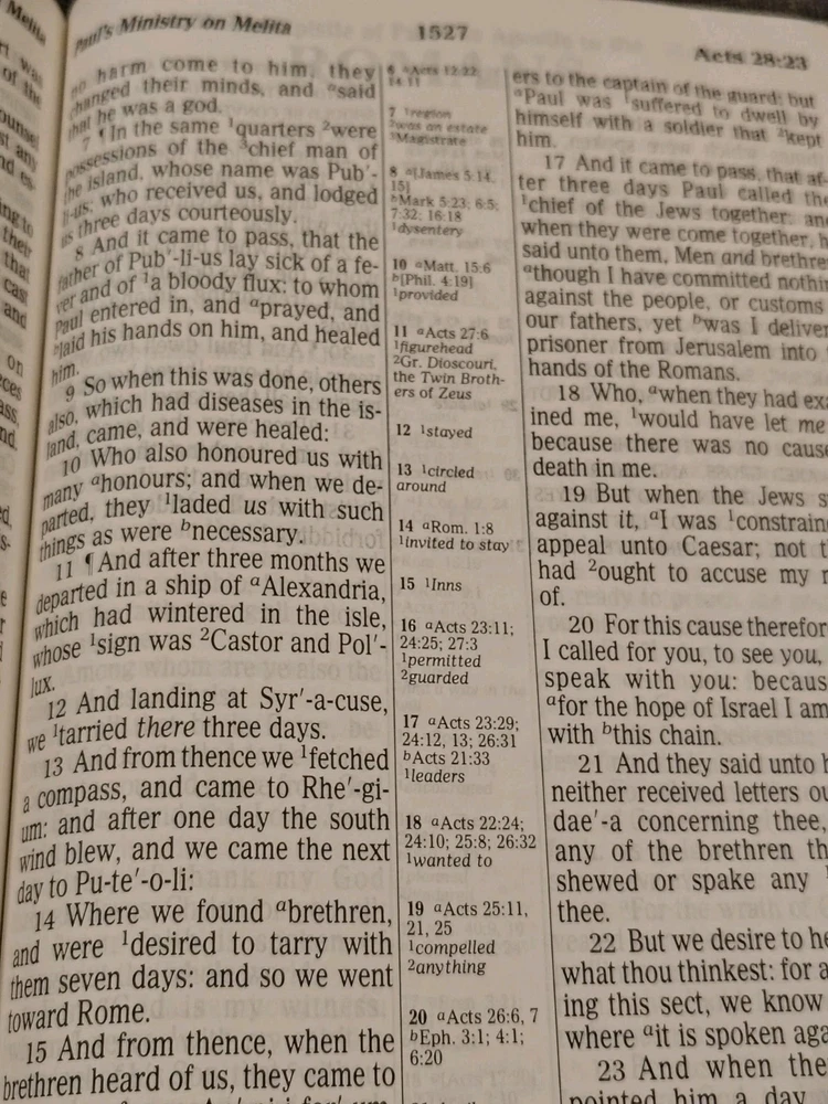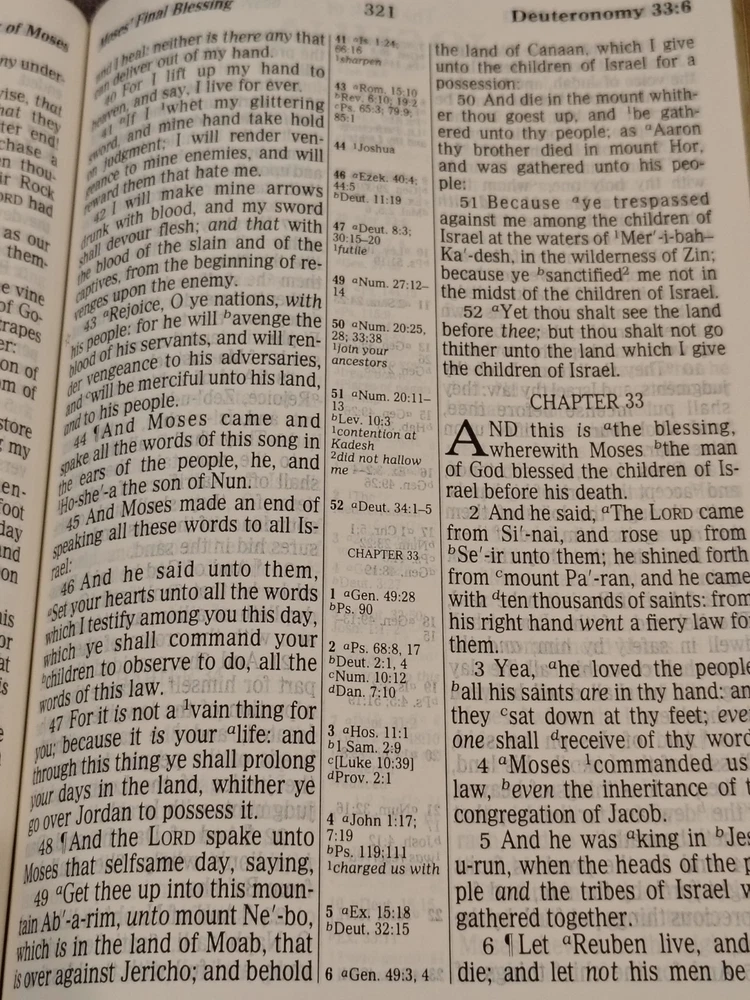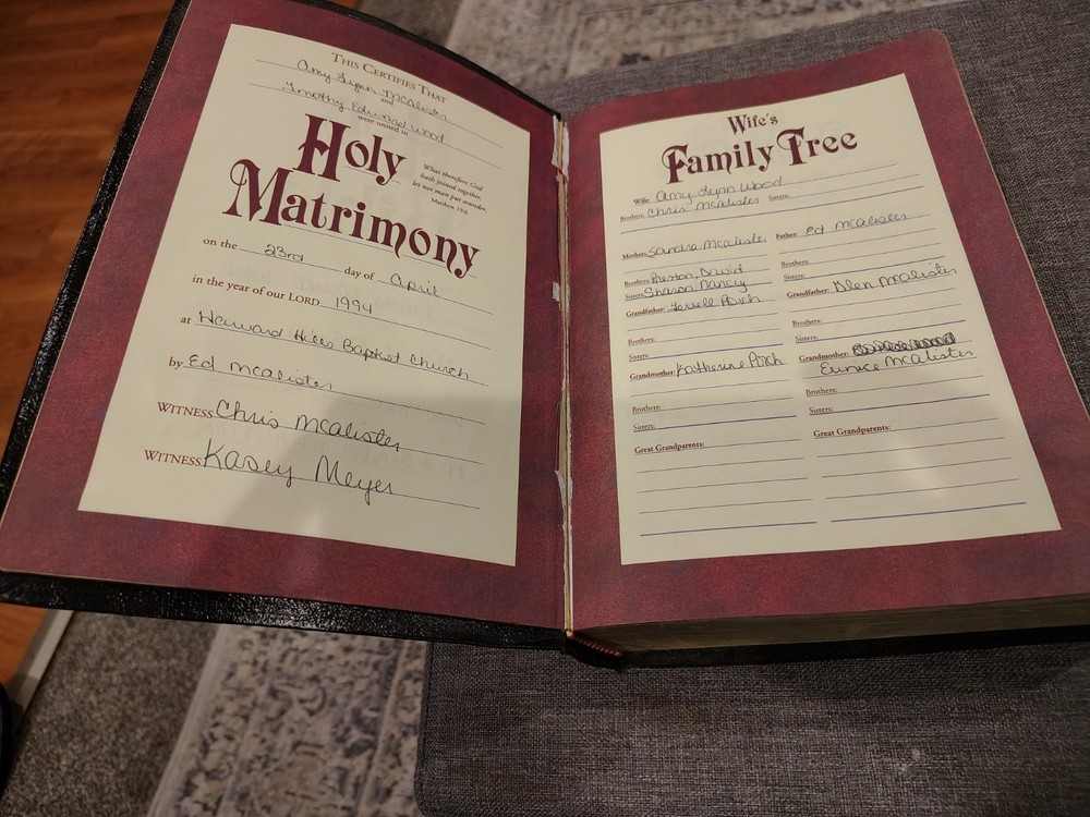 A classic Bible that checks all the boxes people love: - The King James Version (KJV) - Red Letter edition with the words of Jesus in red - Giant print for easy reading - Multiple Color maps - A Center Column cross-reference framework that allows for easier viewing of cross-referenced verses - Translation notes - Articles and charts for better understanding - Concordance This Bible has some family history written on the first pages it has some minor marks on the cover. I could not find any other writing or highlighting in the book. Please look at photos to assess condition further.