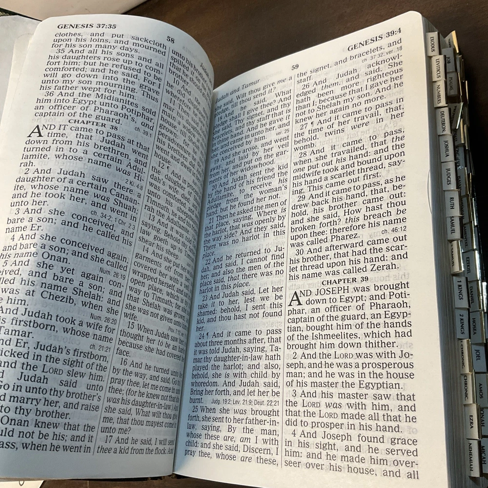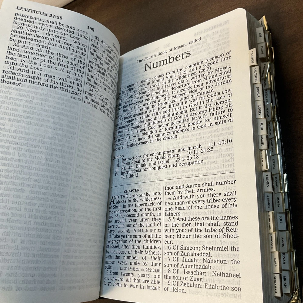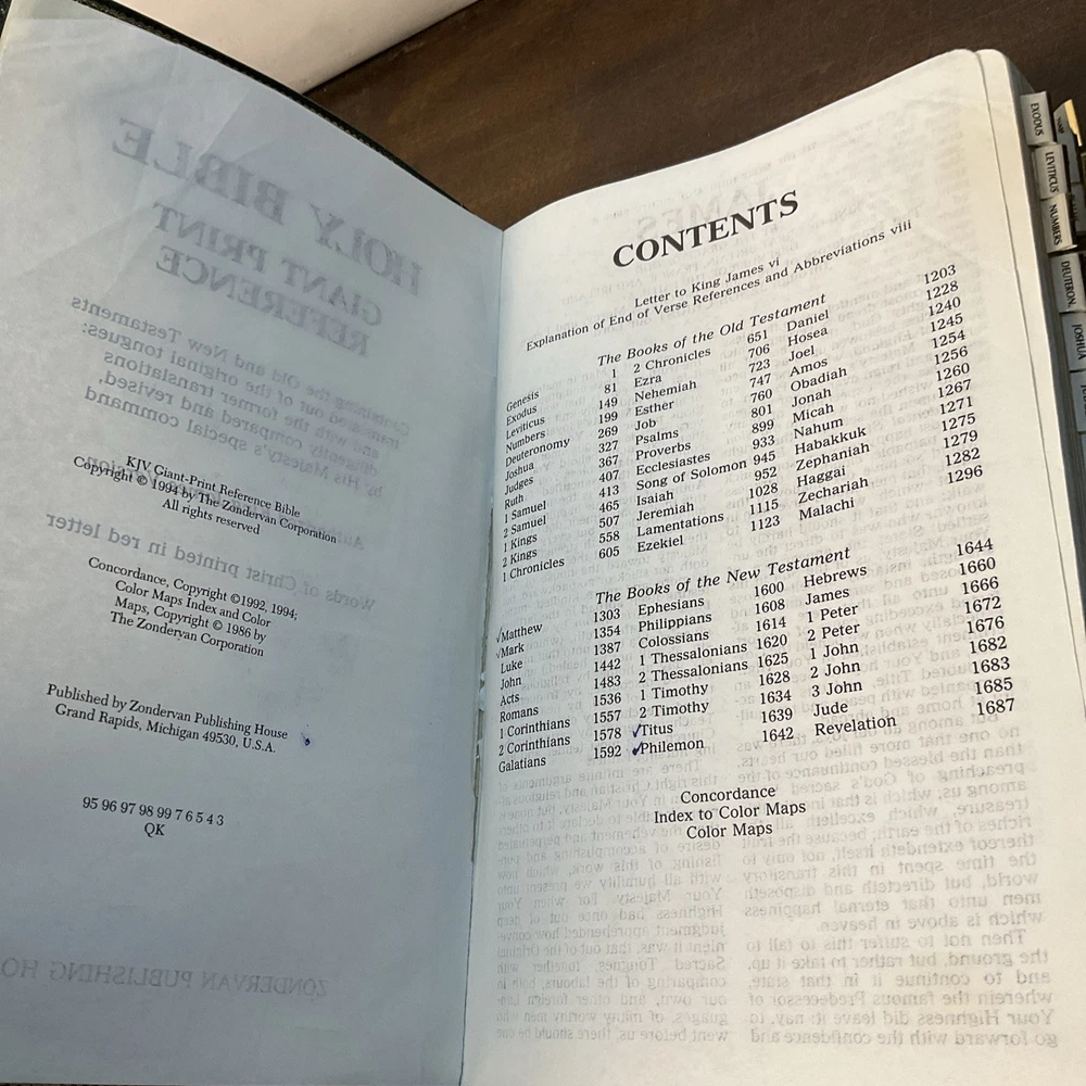 | Features | Leather Bound, Red Letter, Concordance, References, Bokkmark, Maps, Giant Print, Thumb Index |