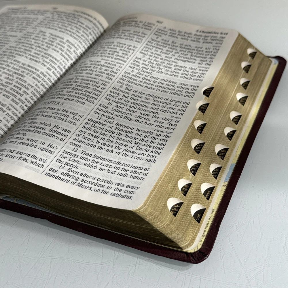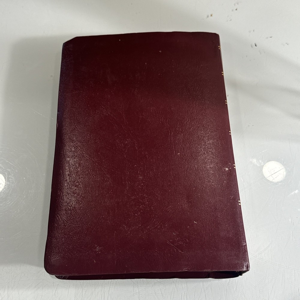 Some family names in front, otherwise in good condition. Slight bend to cover from use The Holy Bible KJV Giant Print with Red Letter Concordance Thumb Index by Thomas Nelson is a vintage Bible edition published in 1976. This Bible is part of the Giant Print Reference Bible series and features a red letter edition, making it easy to identify important passages. It includes a comprehensive concordance, thumb index, and maps, making it a valuable resource for young adults and adults interested in religious and spiritual topics. The English language Bible is inscribed and bound in bonded leather, making it a durable and meaningful addition to any collection.